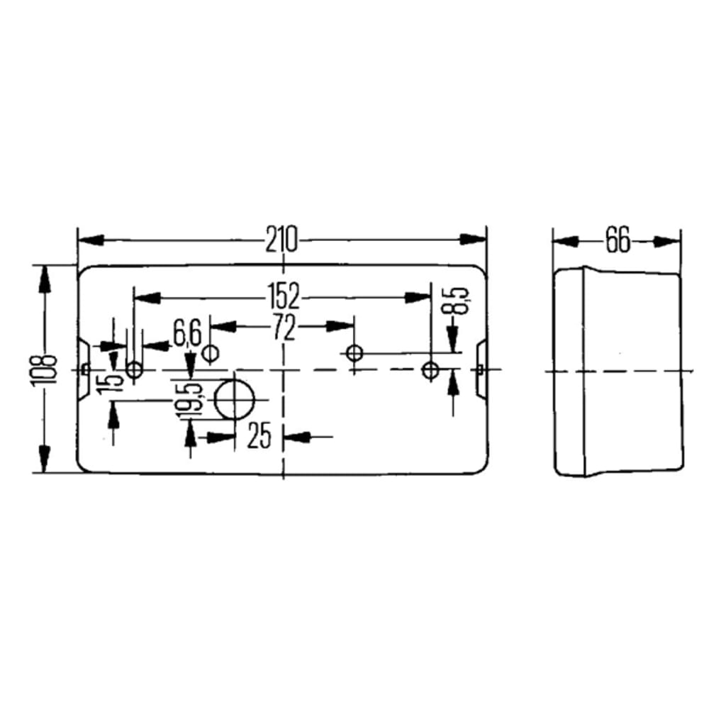 - Schlusslicht, Bremslicht, Nebelschlusslicht rot, Blinklicht gelb, mit Kennzeichenbeleuchtung.