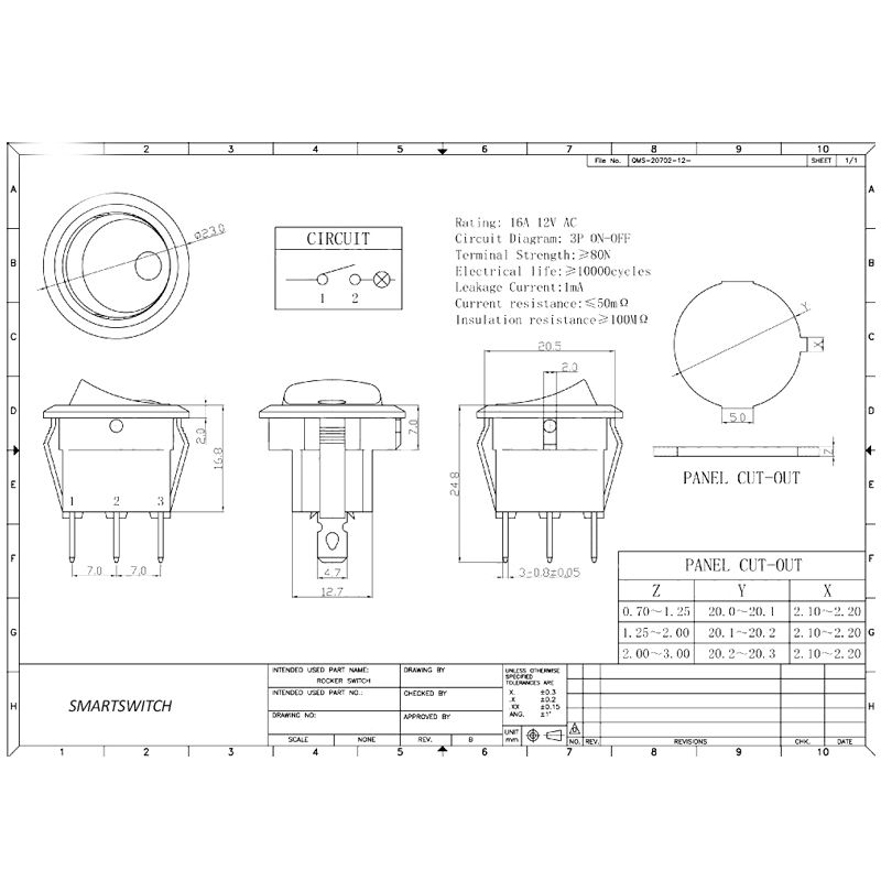 Wippschalter Ein-/Aus LED beleuchtet blau