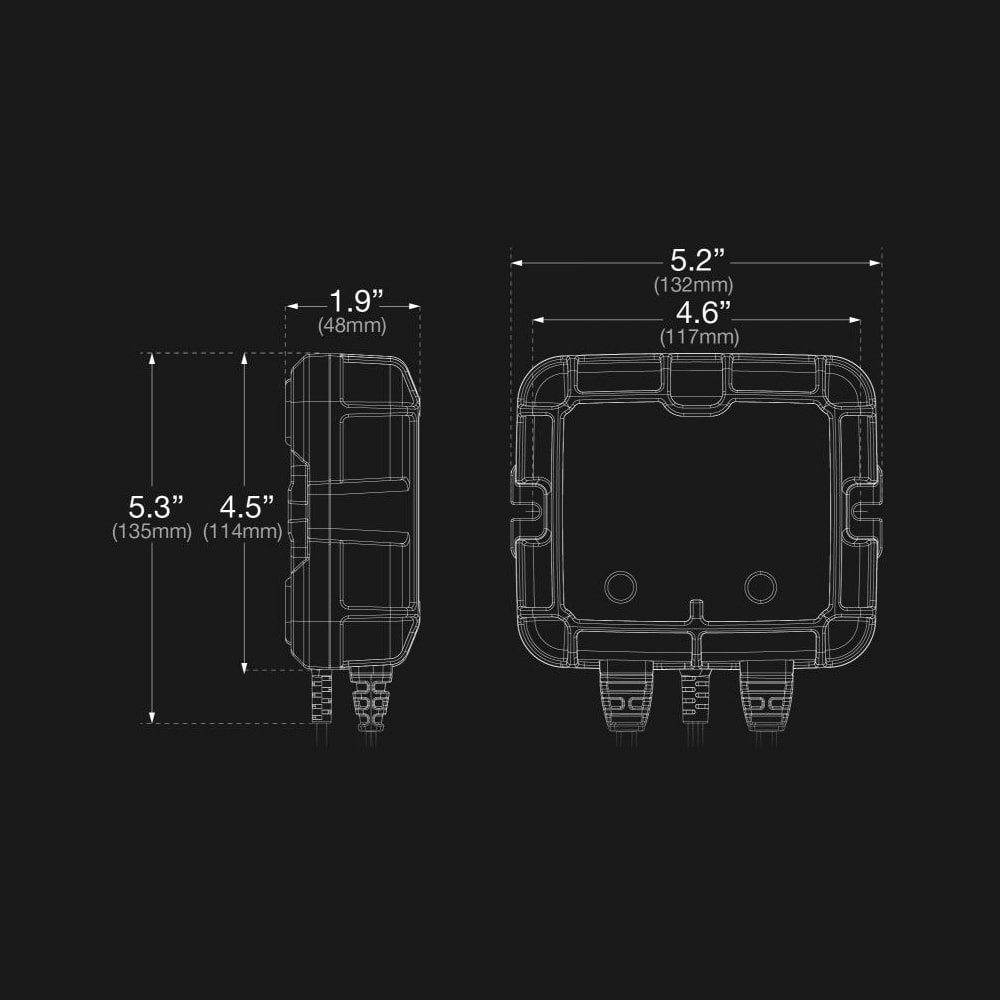 - MEHRERE BANKEN – Ein Zwei-Banken-Batterieladegerat mit einer Nennleistung von 4 Ampere (2 Ampere pro Bank), das zum gleichzeitigen Laden und Warten mehrerer Fahrzeuge wie Auto und Motorrad, Quad und Rasenmäher sowie mehr entwickelt wurde.