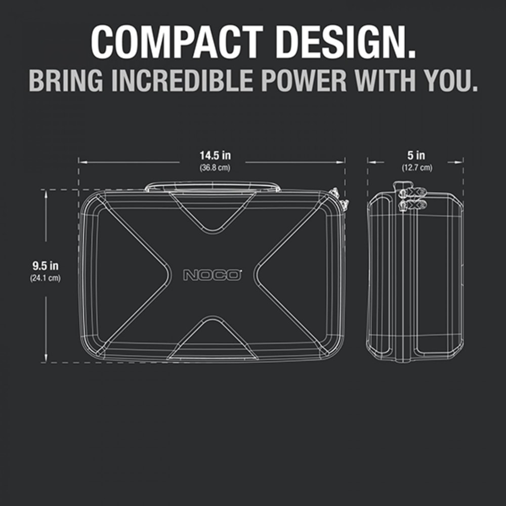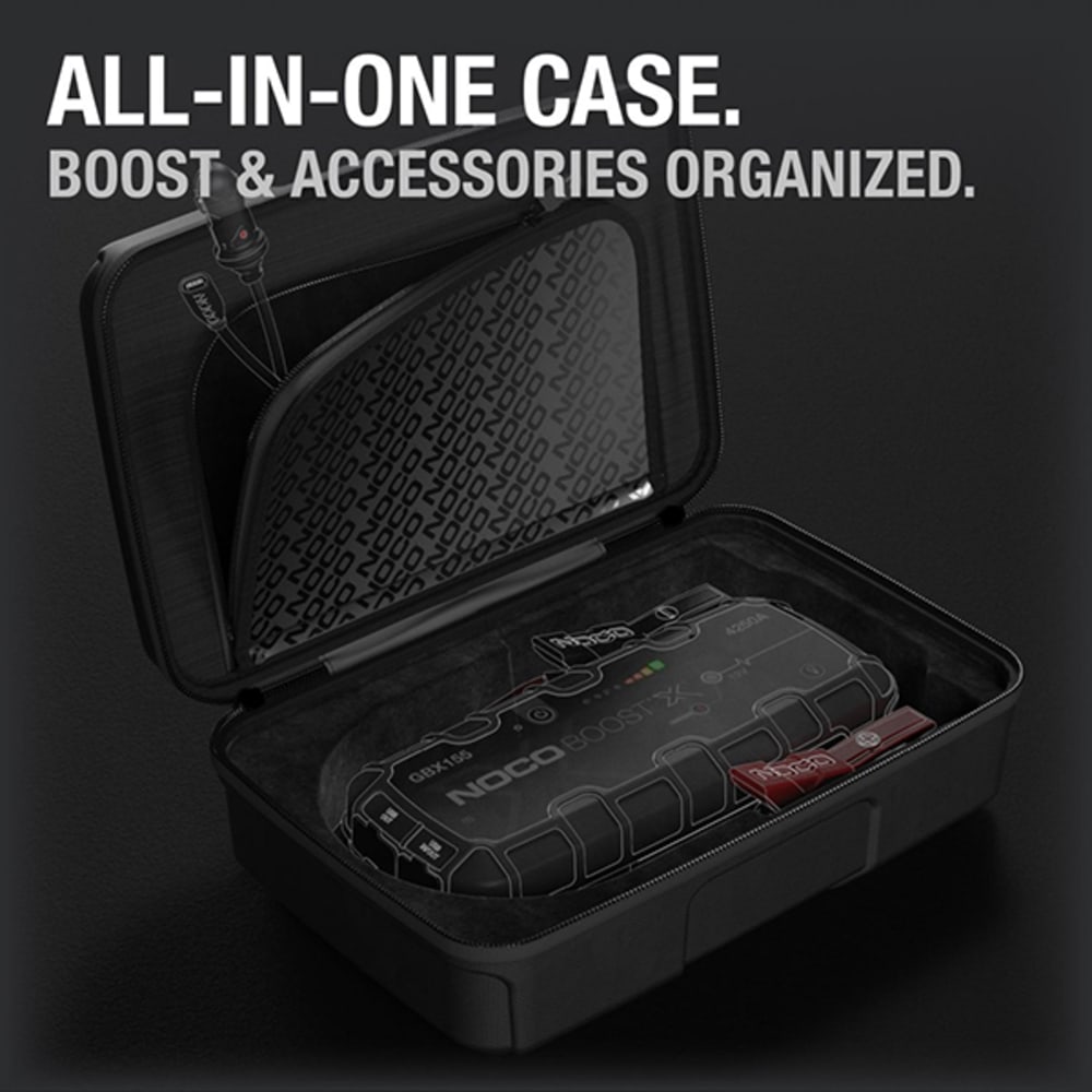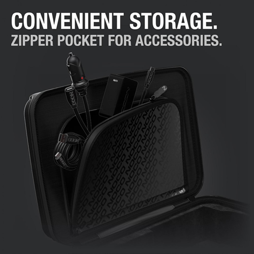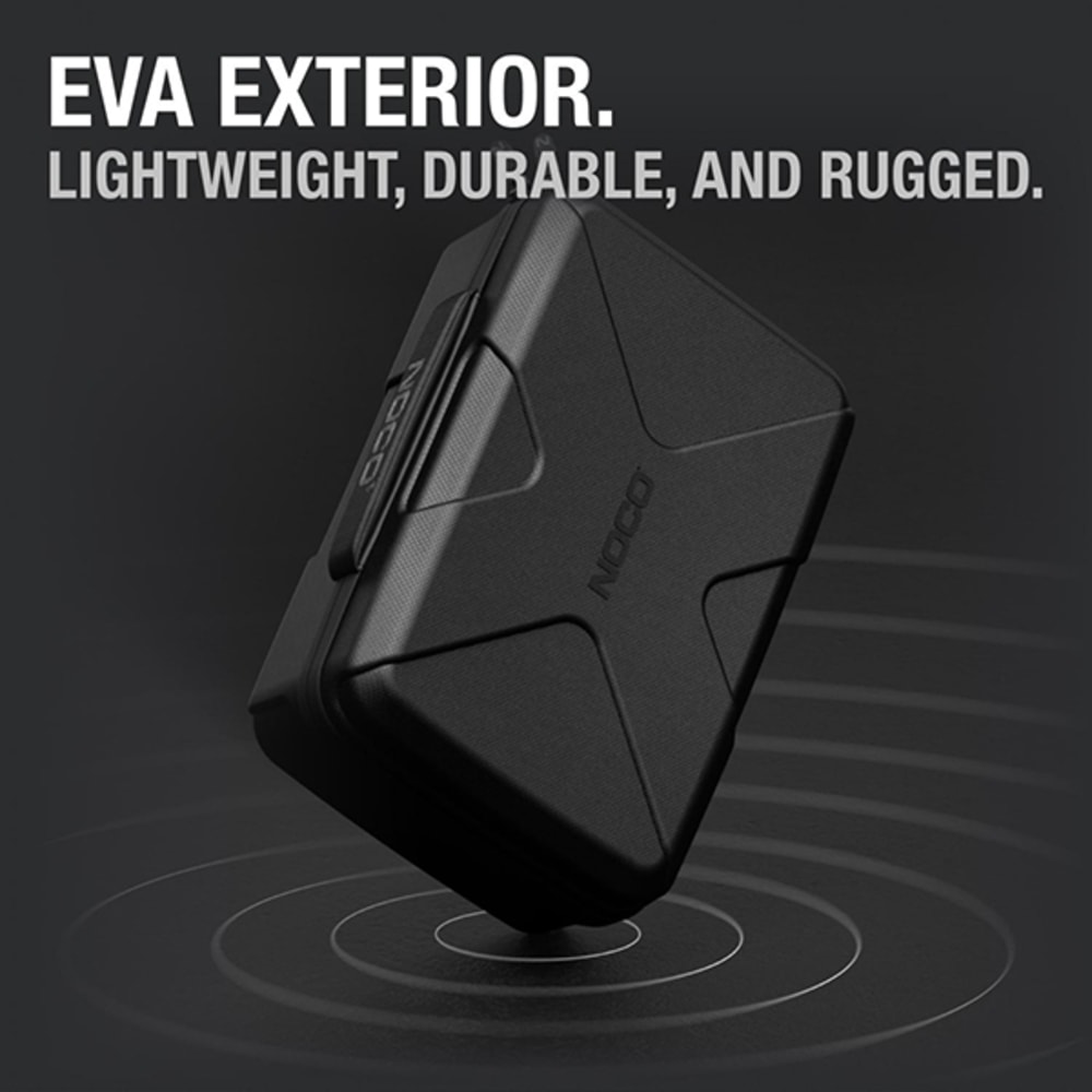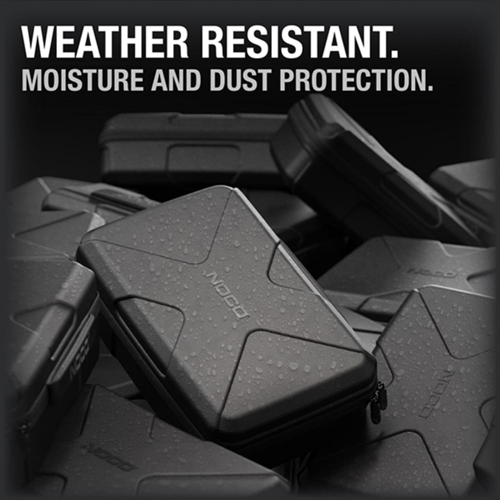 Die leichte, langlebige und robuste Schutztasche GBC104 hat ein halbstarres, individuelles Äusseres mit Reissverschluss und einem verstärkten Griff. Die gummierte EVA-Aussenseite bietet Schutz vor Feuchtigkeit, Stössen, Staub und anderen Umwelteinflüssen, während die geformte Innenseite perfekt für den dazugehörigen NOCO Boost X UltraSafe Lithium-Starthilfe Booster (separat erhältlich) geeignet ist und diesen schützt. Die Schutztasche verfügt über zusätzliche Fächer für das Boost-Zubehör (separat erhältlich). Verstauen Sie den Schutzkoffer einfach in Ihrem Kofferraum, Fahrzeug, Ihrer Konsole oder Garage.