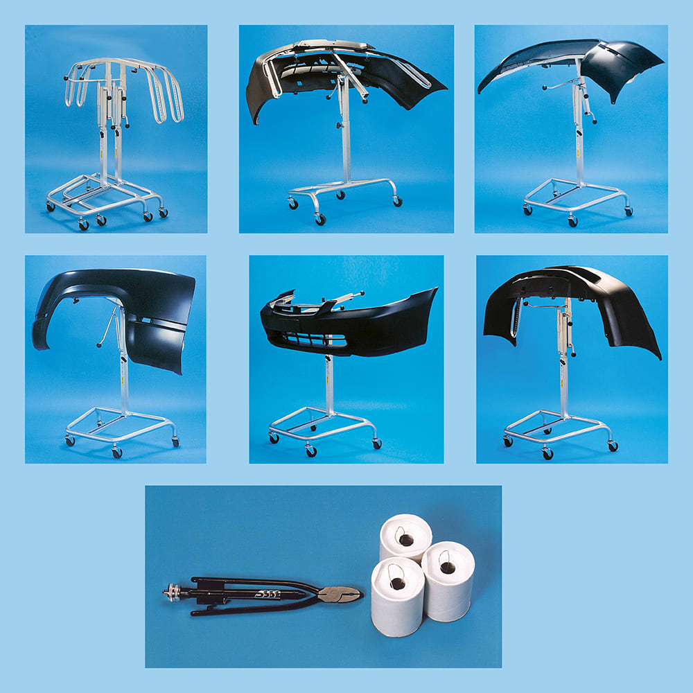 Der perfekt geformte Lackierständer hält Stossstangen während dem Reparieren, Spachteln, Schleifen, Lackieren und Trocknen fest. Das offene Design bietet auch auf der Rückseite des Stossstangengitters einen Zugang zum Lackieren.