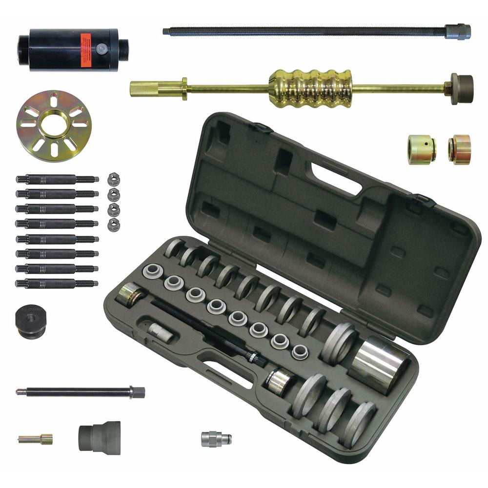 Das Premium-Radlager-Paket ermöglicht den schnellen, präzisen und sicheren Aus- und Einbau von Radlagern, Radnaben, Steckachsen sowie Gelenkwellen. Selbst stark festsitzende oder eingerostete Radlager lassen sich durch den Hydraulik-Zylinder problemlos herausziehen.