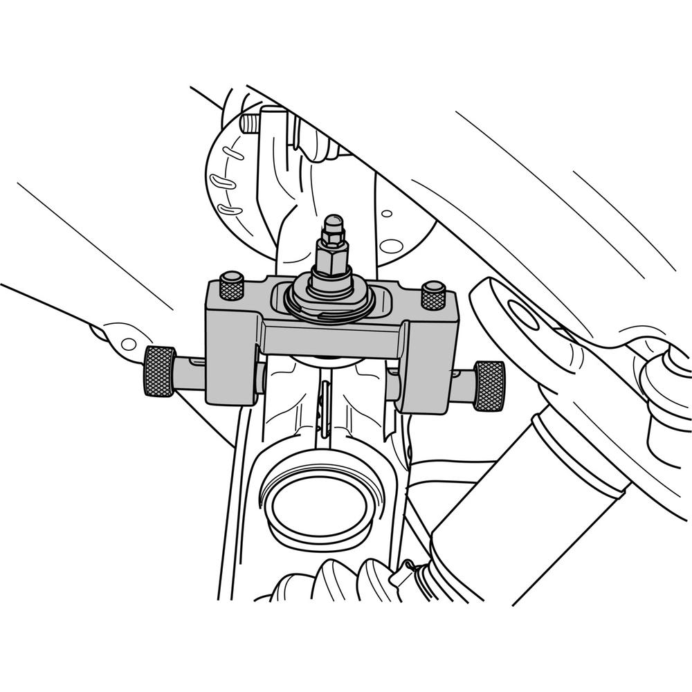 Um festsitzende Stossdämpfereinheiten aus der Achsschenkel-Klemmbohrung bzw. Traggelenke aus der unteren Traggelenkaufnahme beschädigungsfrei herausziehen zu können, ist es unbedingt erforderlich, die Klemmbohrung fachgerecht mit einem Spreizwerkzeug aufzuweiten.