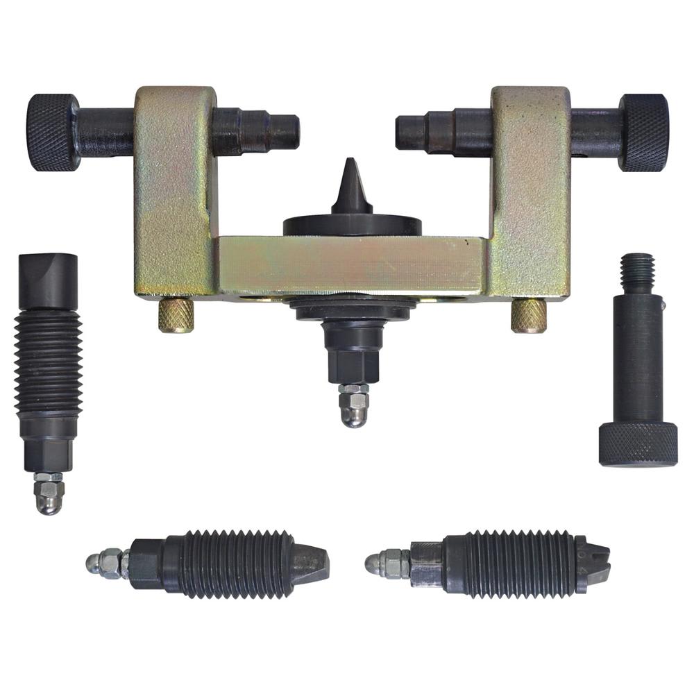 Der Spreizwerkzeug-Satz ermöglicht sowohl das fachgerechte Aufweiten der Federbein-Klemmbohrung als auch der unteren Traggelenkaufnahme an der Vorderachse. Erforderlich z.B. beim Wechsel der Feder, des Stossdämpfers sowie des Traggelenks.