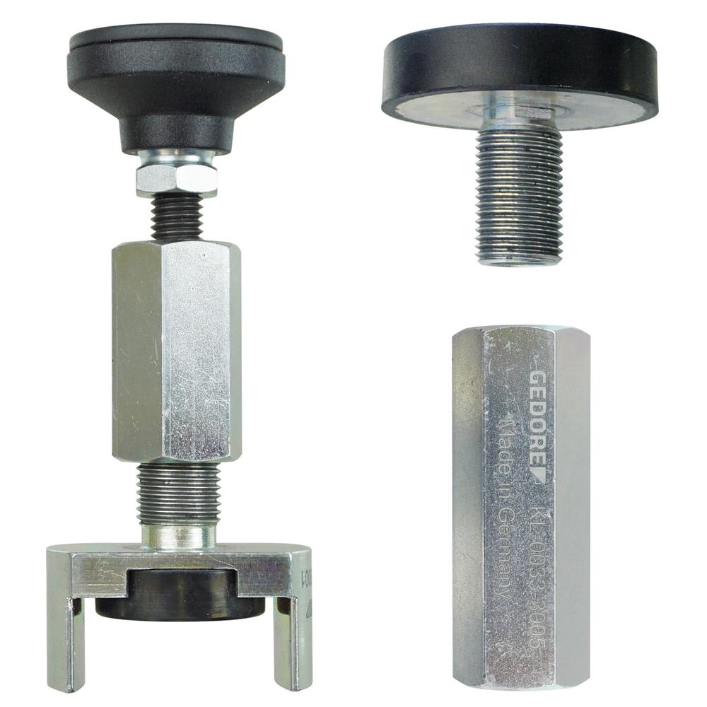 Der Niederhalter-Satz erleichtert den Aus- und Einbau von Fahrwerksfedern an Quer- und Raumlenker-Achsen. Empfehlenswert z.B. beim Aus- und Einbau mit dem Innenfederspanngerät - KL-0033-10 E.