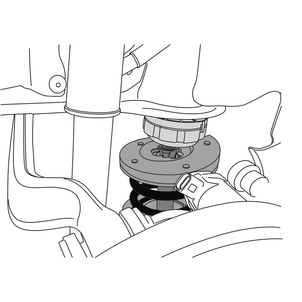Der Niederhalter wird dazu zwischen dem oberen Achslenker sowie der Fahrzeugkarosserie eingesetzt und leicht vorgespannt.