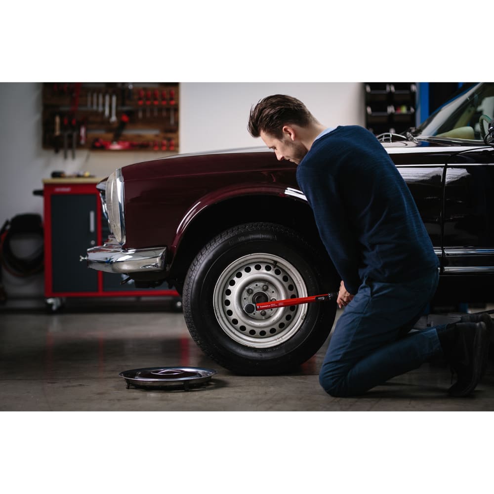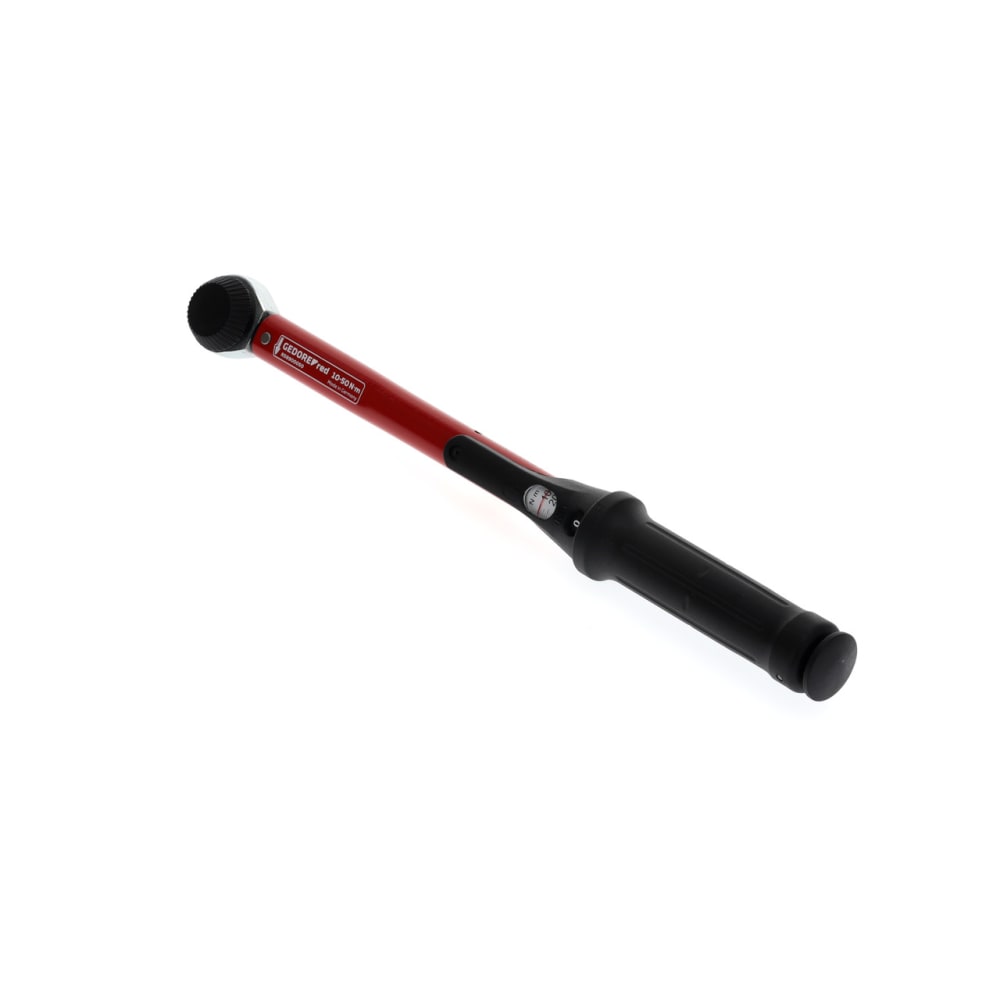 Verstellbarer Drehmomentschlüssel mit Vierkantantrieb und integrierter Knarrenfunktion, Deutlich hör- und fühlbare Drehmomentauslösung, Rechtsanzug und Linksanzug durch Umstecken des Pilzkopfs / Durchsteckvierkants, Auslösegenauigkeit: +/-3 % Toleranz vom eingestellten Skalenwert