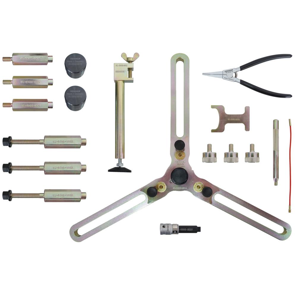 Der Doppelkupplungs-Basiswerkzeugsatz KL-0500-80 KA ermöglicht, in Verbindung mit den fahrzeugspezifischen Ergänzungssätzen, die fachgerechte Instandsetzung von allen derzeit verfügbaren LuK* Doppelkupplungssystemen (trockene Kupplungsausführung).