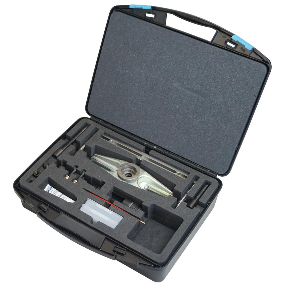Der Injektorenauszieher-Satz ermöglicht ein schnelles und kraftvolles Herausziehen von stark festsitzenden Injektoren, ohne dabei den Zylinderkopf auszubauen.