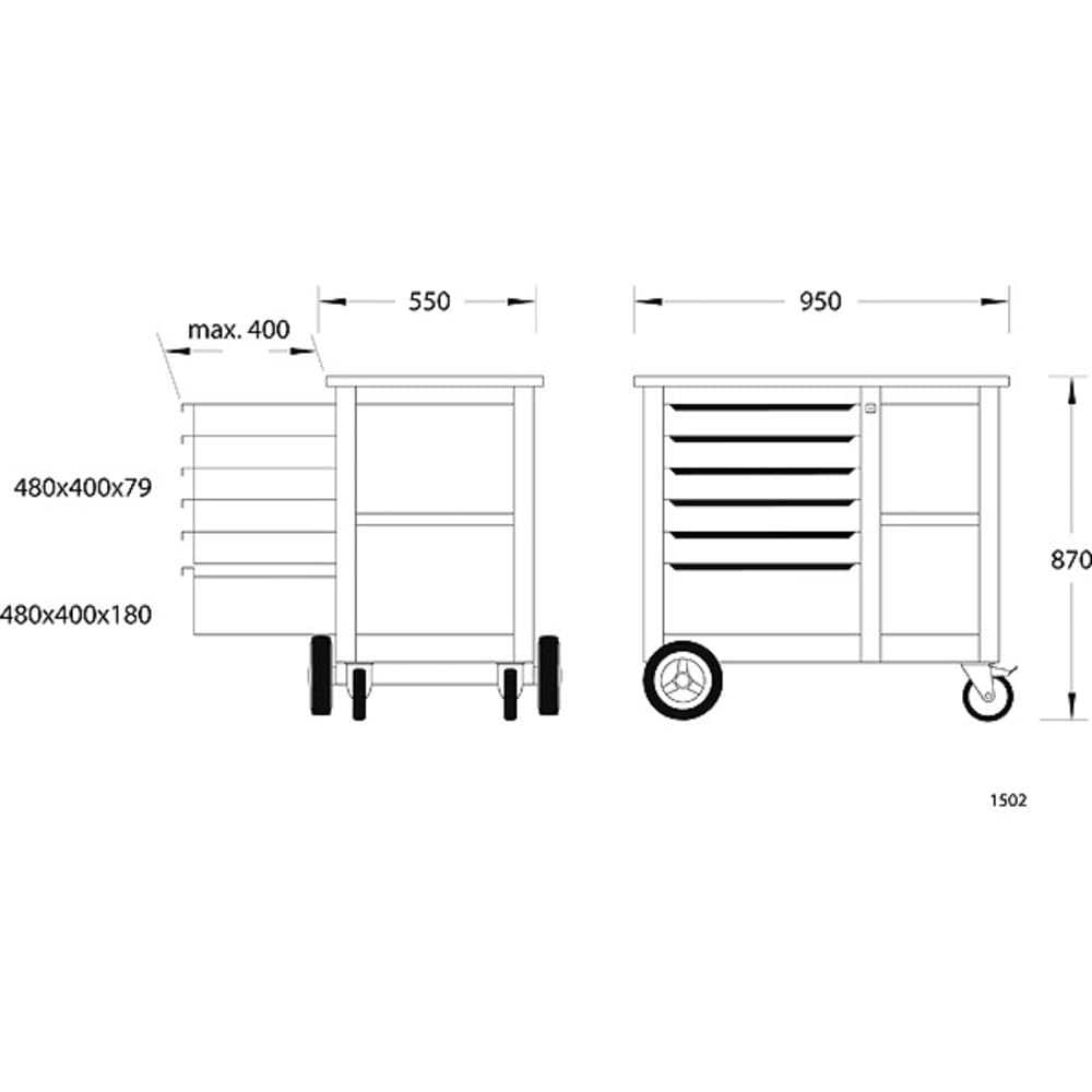 - Arbeitsplatte-Abmessung: 950 x 550 x 25 mm