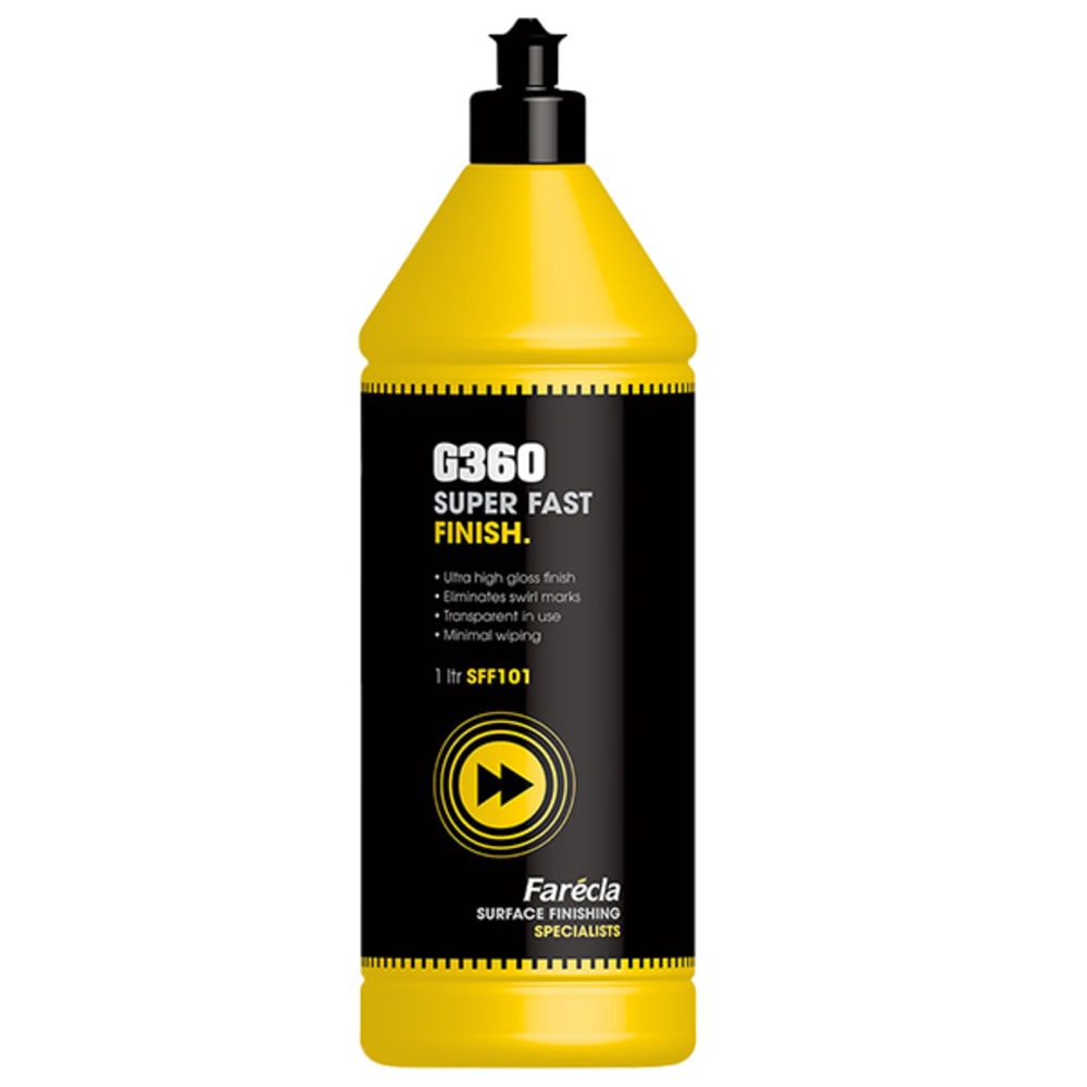 Das Poliermittel G360 Finish, wird mit einem flexiblen G Mop Finish Schwamm schwarz verwendet und beseitigt Hologrammen und andere kleine Kratzspuren, schnell und mit geringem Aufwand. Ultimativer Tiefenglanz. Der Poliermittel wird während der Verarbeitung transparent. Resultat sofort ersichtlich.