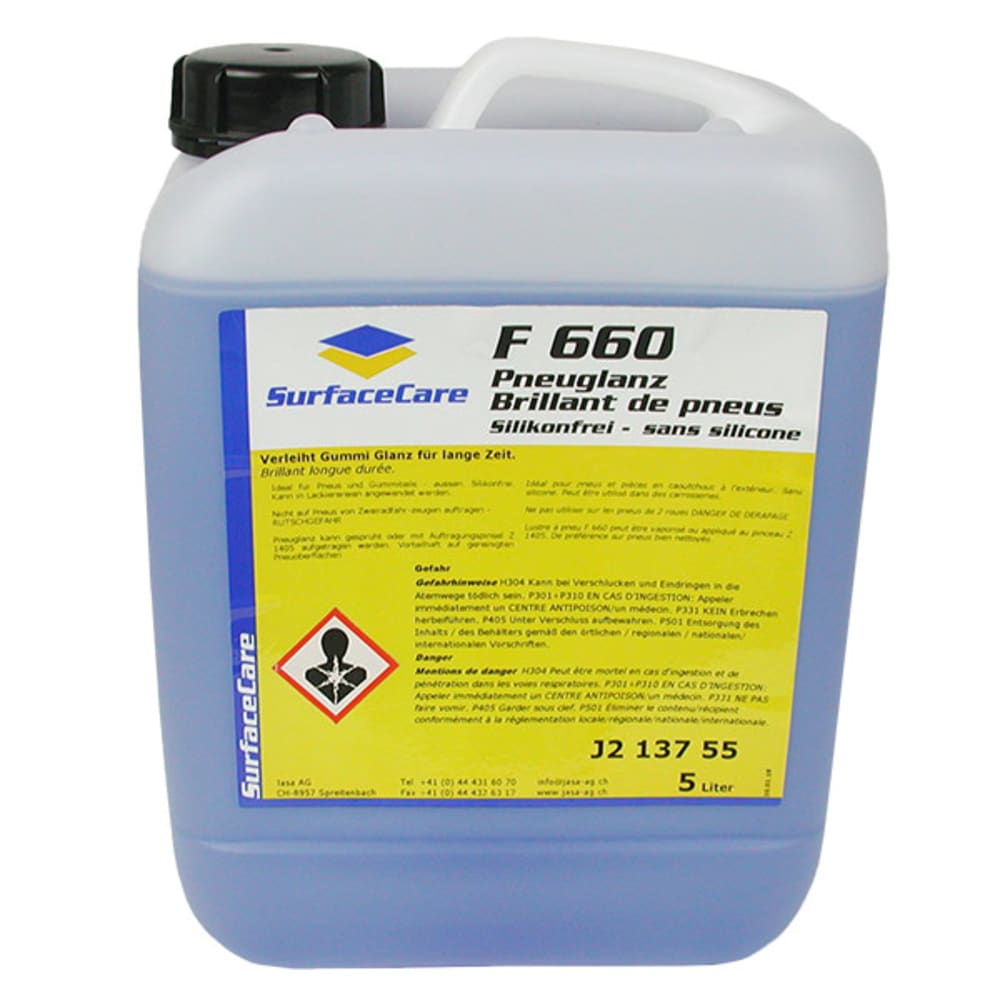 Verleiht Gummi Glanz für lange Zeit. Silikonfrei, kann in Lackierereien angewendet werden. Nicht auf Pneus von Zweiradfahrzeugen auftragen - RUTSCHGEFAHR.