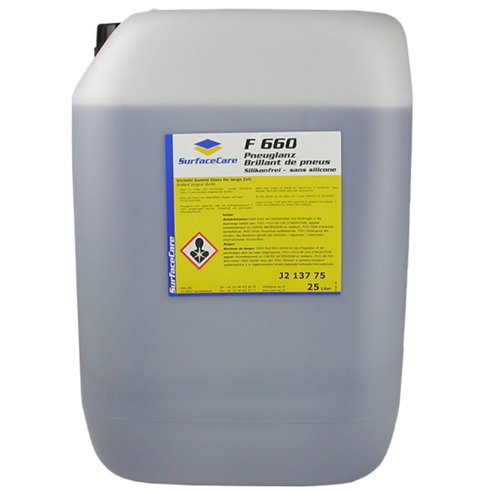 Verleiht Gummi Glanz für lange Zeit. Silikonfrei, kann in Lackierereien angewendet werden. Nicht auf Pneus von Zweiradfahrzeugen auftragen - RUTSCHGEFAHR.