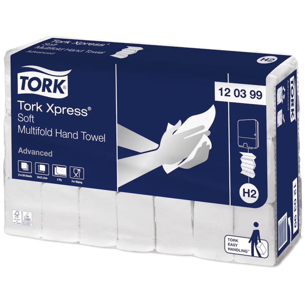 Ermöglichen Sie Ihren Gästen ein gutes und angenehmes Händetrocknen mit den Tork Xpress® Weichen Multifold Handtüchern, die sanft zu den Händen sind und sich hochwertig anfühlen. In Kombination mit dem Tork Xpress® Spender für Multifold Handtücher eignen sie sich für Waschräume mit mittlerer Besucherfrequenz. Dieser eignet sich besonders für kleinere Räume, wo er für Komfort und Hygiene sorgt. Die Handtücher bestehen zu 100 % aus recycelten Fasern.
