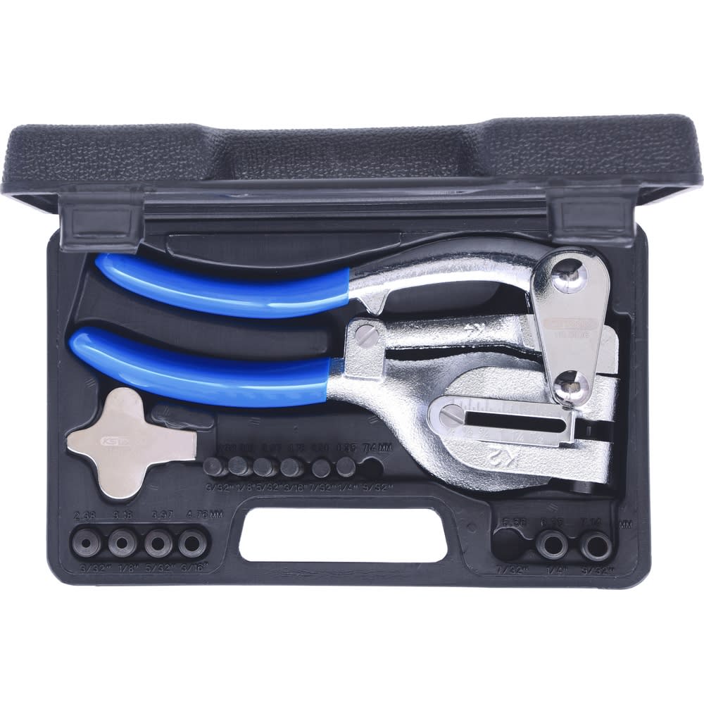 - 7 unterschiedliche Lochstanzen mit Gegenhalter (2,38 mm - 7,14 mm)