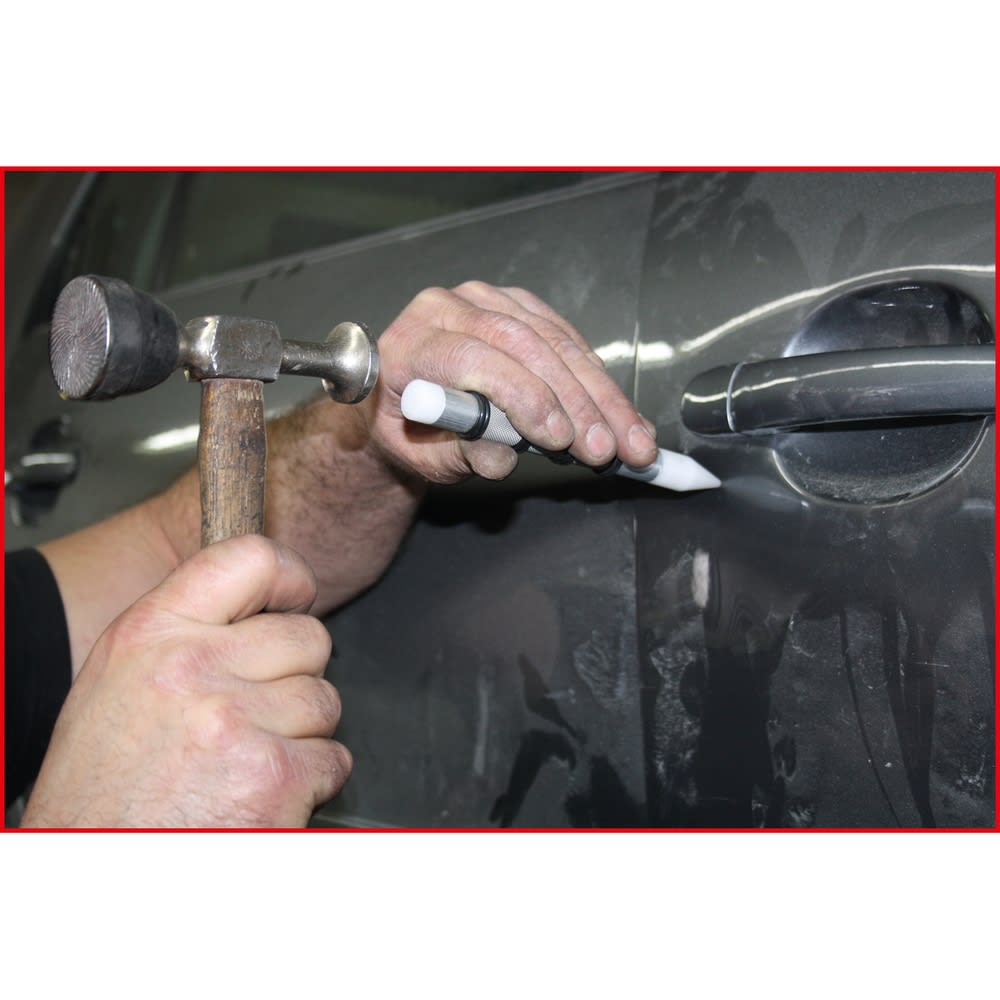- Erhöhungen werden mit gezielt angesetzten Schlägen auf die Beule rückverformt