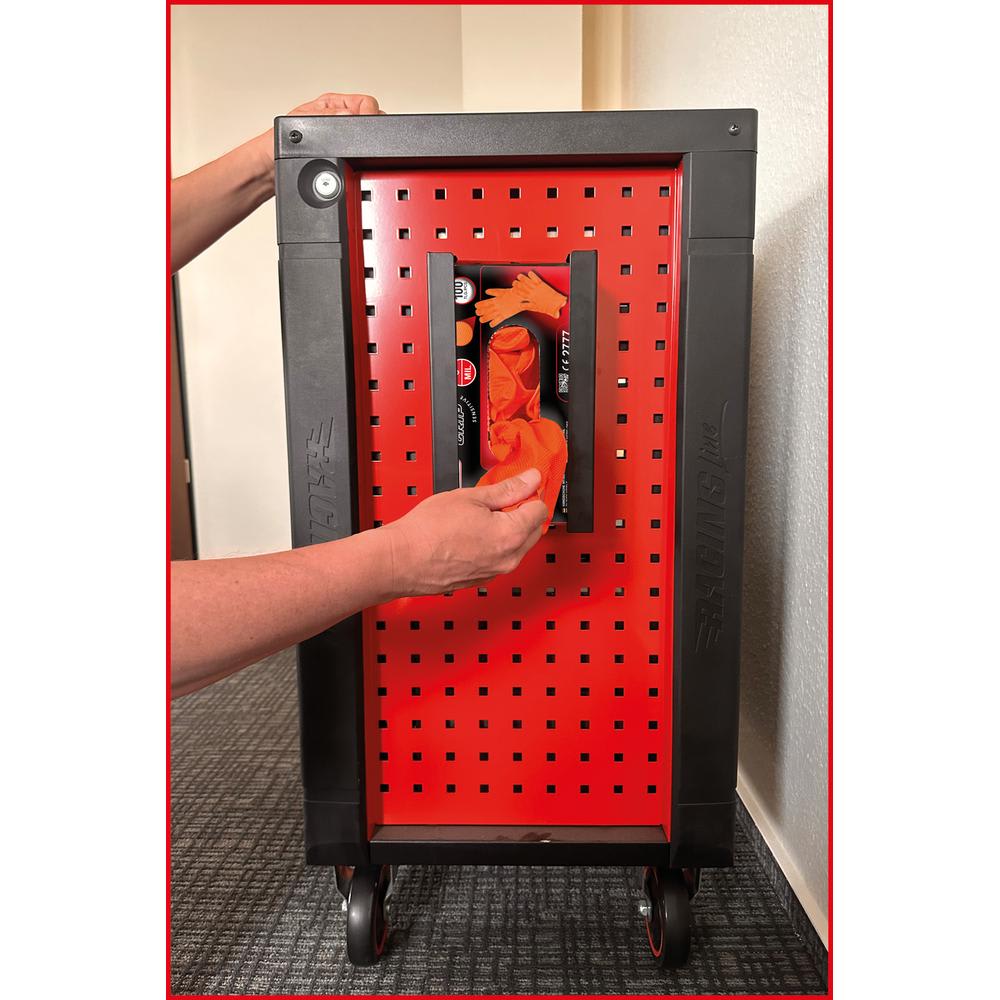 - mit Magneten zur sicheren Befestigung an jeder magnetischen Oberfläche