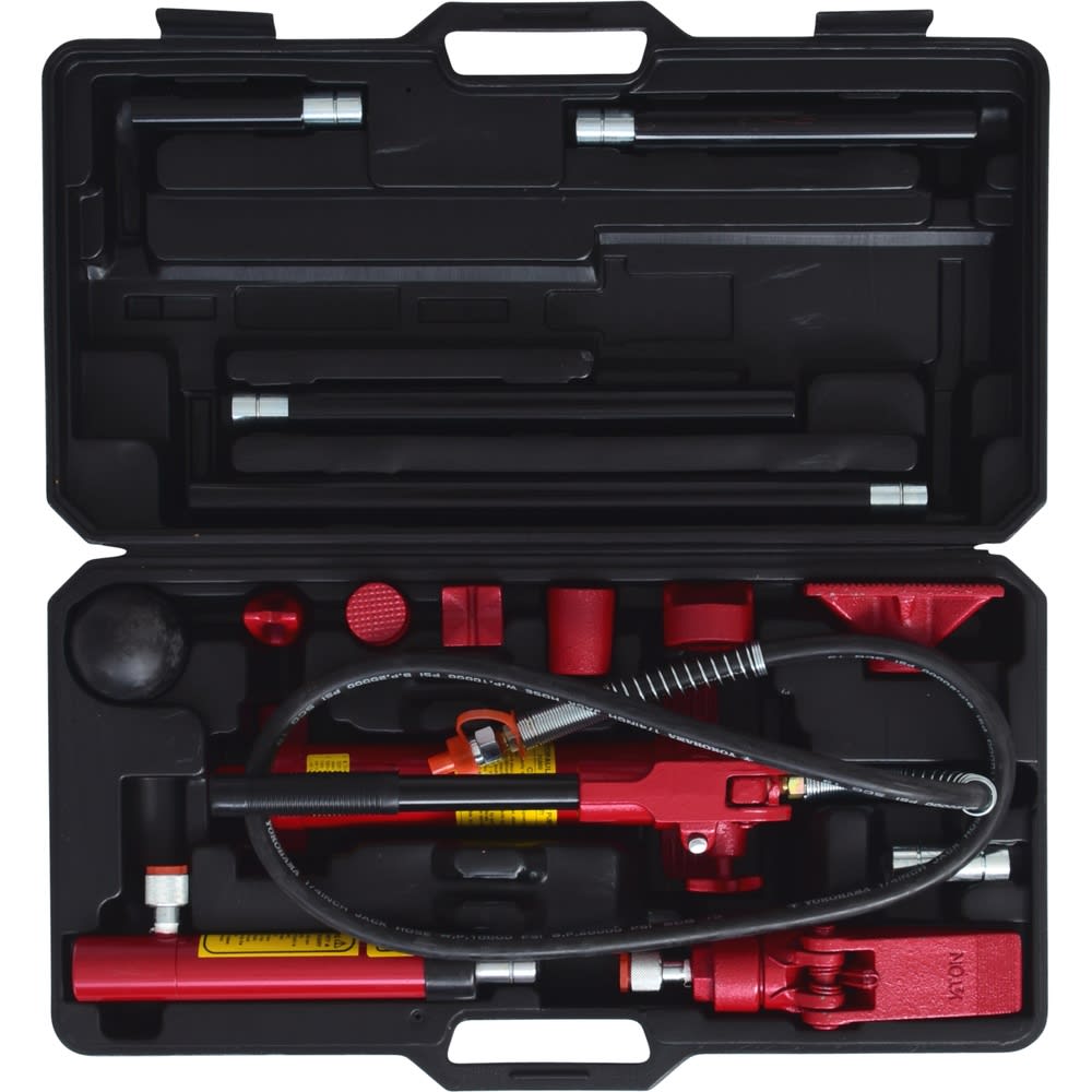 - inklusive Hydraulik-Handpumpe/-Druckzylinder 4 t, Verlängerungsrohr, Druckplatte und verschiedenen Aufsätzen