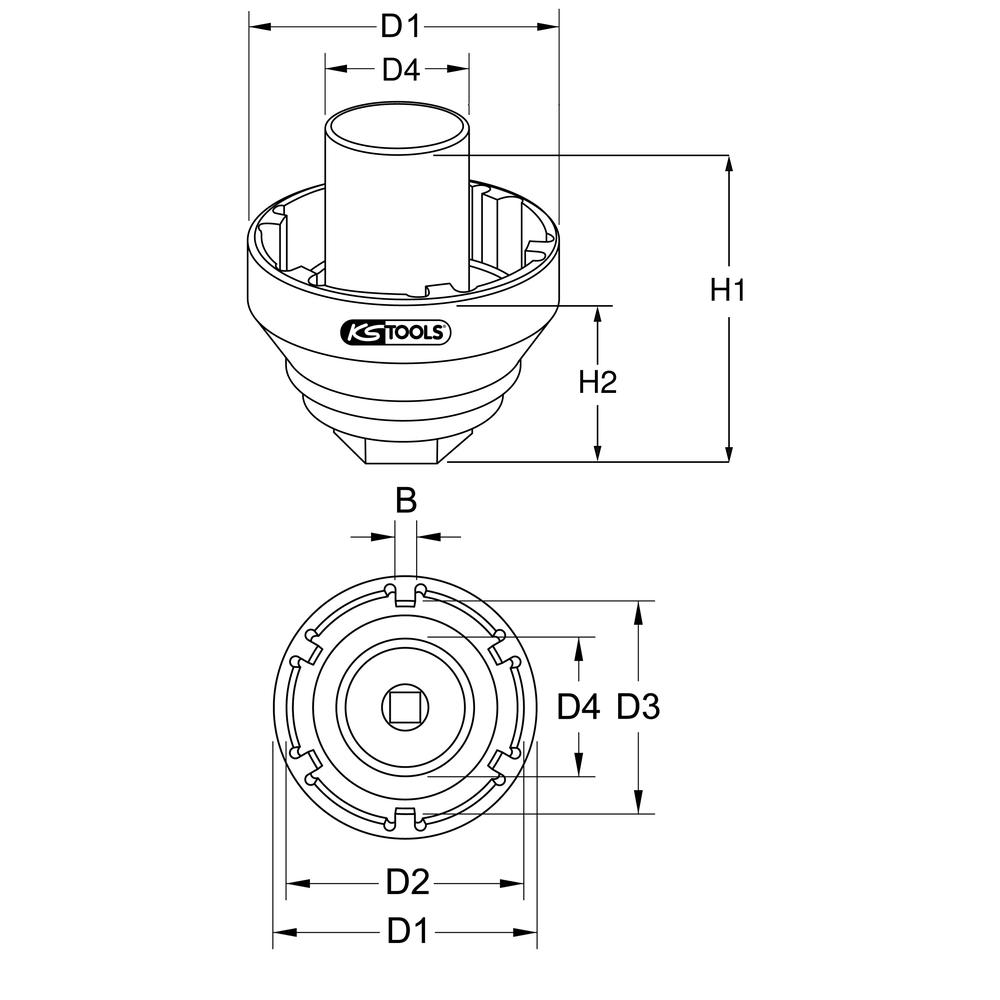 - Innenvierkant nach DIN 3121 / ISO 1174