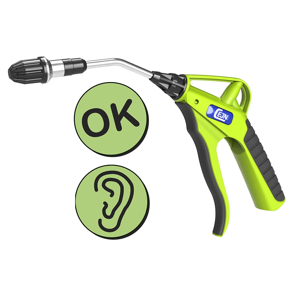 Die Hi-Vis-Ausführung der Druckluft- und Flüssigkeitspistolen 209 ist aufgrund der Farbgebung sehr gut sichtbar, wodurch sich die Sicherheit am Arbeitsplatz erhöht. Ihre OSHA-konformen Sicherheitsdüsen reduzieren die Gefahr von Unfällen und Verletzungen durch Luftembolien erheblich. Aufgrund des robusten und dennoch leichten Kunststoffgehäuses ist die Pistole einfach zu handhaben und zu bewegen. Sie hält auch starker mechanischer Beanspruchung stand und ist auf eine lange Haltbarkeit ausgelegt – auch in anspruchsvollen Umgebungen. Die Blaspistole 209 ist ein vielseitiges Werkzeug, das für verschiedene Anwendungen eingesetzt werden kann. Sie kann sowohl mit Druckluft als auch mit nicht-explosiven Flüssigkeiten verwendet werden und ist damit eine vielseitige Lösung für viele Branchen.