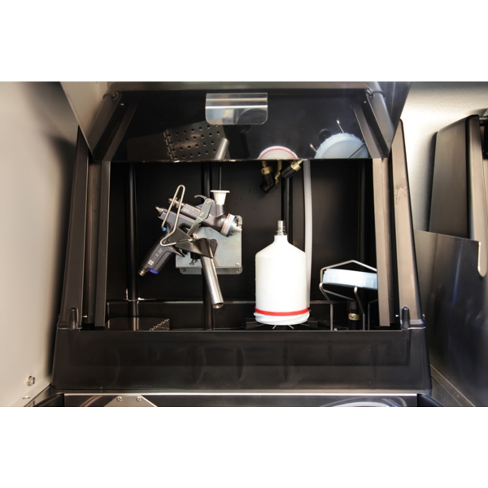 Ein Gerät in kompakter Größe für die Reinigung auf Lösemittelbasis. Automatische Reinigung mit manueller Klarspülung.