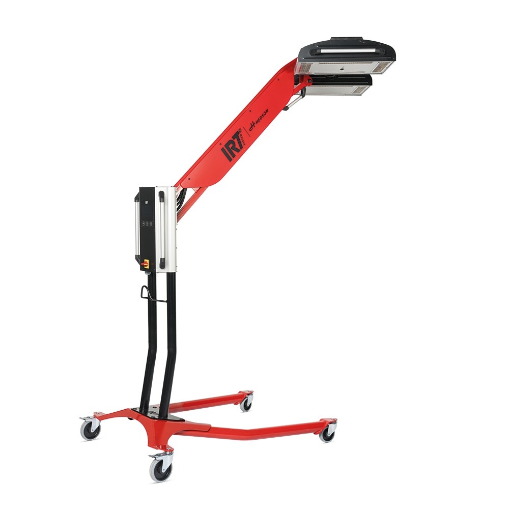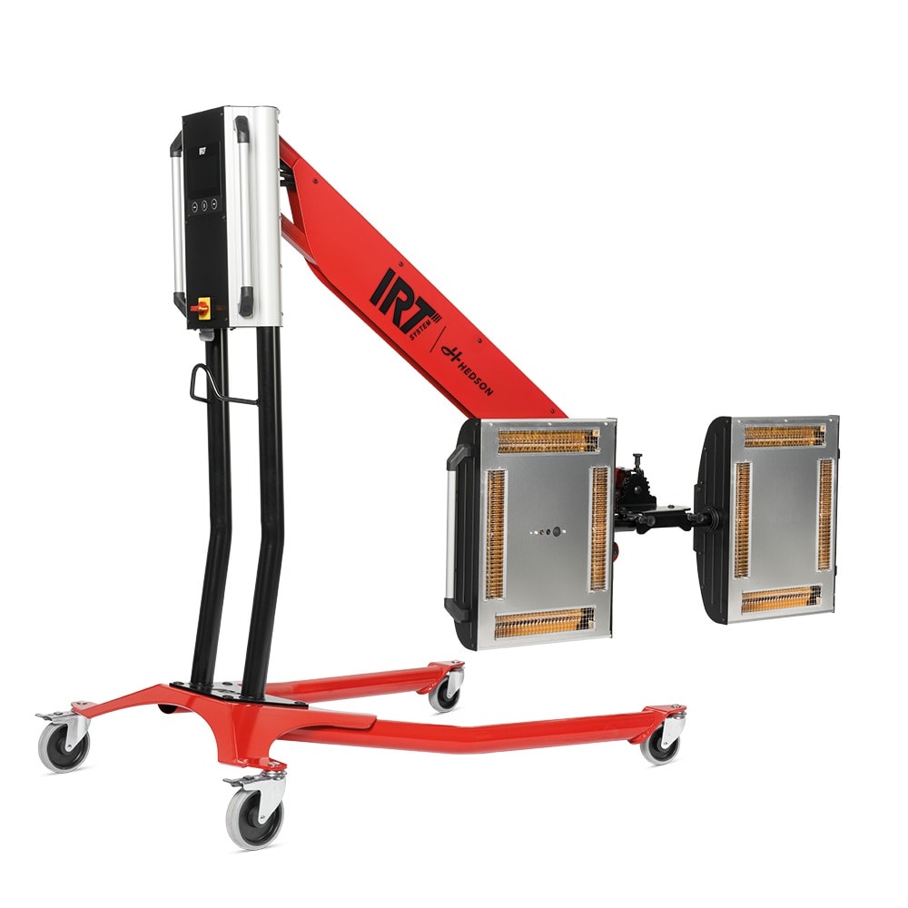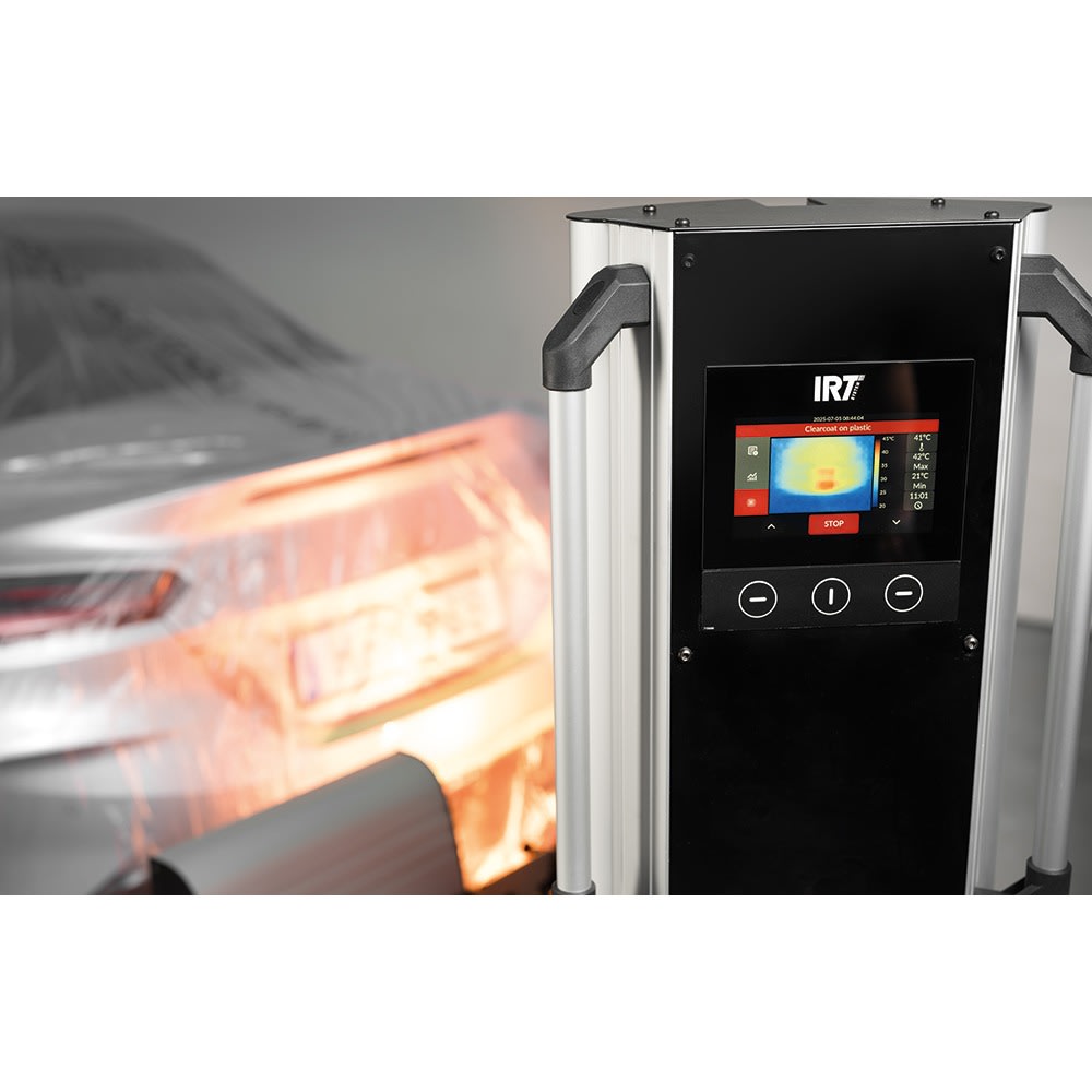 Das IRT 4-1 / 4-2 TCR von Hedson ist ein professionelles Infrarot-Härtungssystem für die Lacktrocknung, gesteuert durch Wärmebildkamera und Radar. Die integrierte Wärmebildkamera mit 32×24 Array (768 Pyrometer) überwacht kontinuierlich die Temperatur über eine Fläche von 170 × 90 cm und passt die Intensität der Infrarotlampen automatisch an. Das System optimiert jeden Härtungsvorgang in Echtzeit, dokumentiert Temperaturprofile zur Qualitätssicherung und gewährleistet konstante Ergebnisse. Der Radar-Abstandssensor misst präzise den Abstand zur Oberfläche, während der 5-Zoll-Touchscreen eine intuitive Bedienung ermöglicht. Die adaptive Kühlung mit Koster- und Vinga-Sensorboards sorgt für zuverlässige Leistung und Überhitzungsschutz. Das Gerät ist in Varianten mit einer oder zwei Kassetten erhältlich (4-1 TCR bzw. 4-2 TCR) und bietet Spannungsoptionen für EU, AUS und JP.