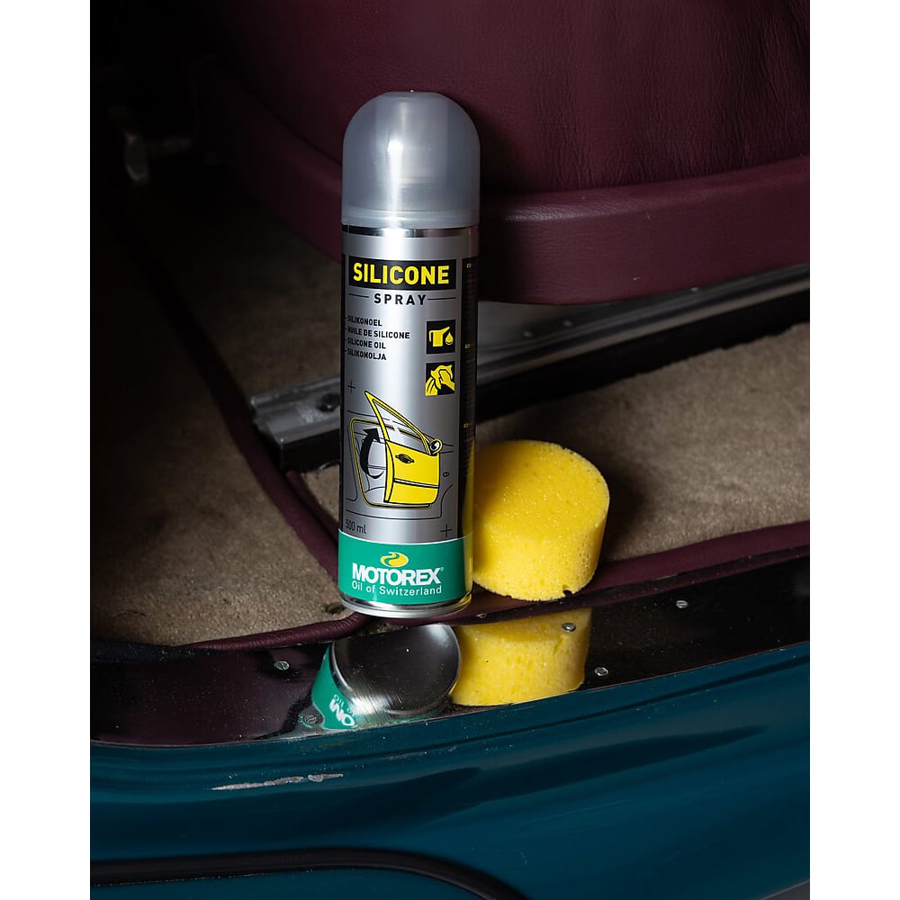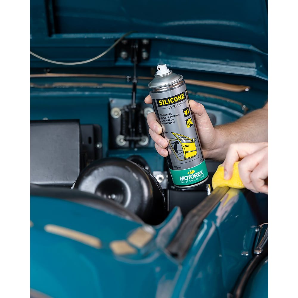 - MOTOREX SILICONE SPRAY dient als Schmier-, Pflege- und Schutzmittel für Gummi-, Kunststoff-, und alle Metallteile.