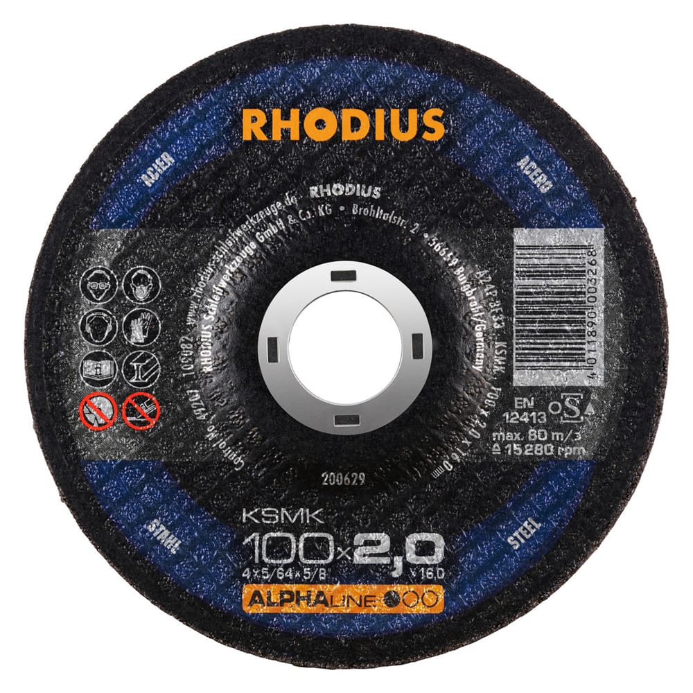 Die Trennscheibe enthält hochwertiges Korund (Aluminiumoxid) und 2 vollflächige Glasfasergewebe. Die Mindestseitenlast für die Trennscheibe beträgt nach EN 12413 und oSa 40 N, bzw. ab Durchmesser 150 mm 50 N. Im Bohrungsring ist das Verfallsdatum (drei Jahre) eingeprägt. Durch aufwendige In-Prozess-Kontrollen in der Produktion wird eine gleichbleibende Qualität gewährleistet. Um ein Maximum an Sicherheit zu bieten, wird jede tausendste Scheibe zerstörend getestet.