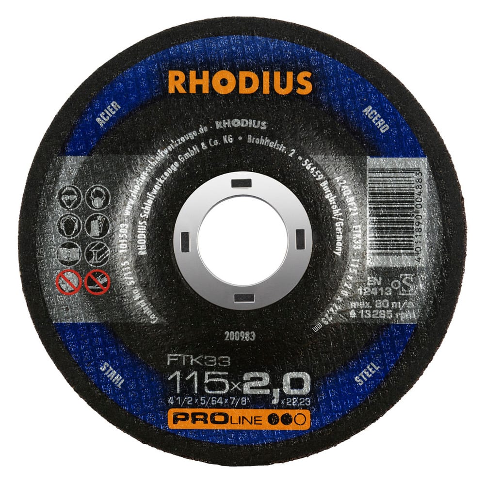 Die Freihandtrennscheibe mit einer Scheibenbreite von 2,0 mm und 3,0 mm ist in den Durchmessern 100 mm bis 230 mm erhältlich.