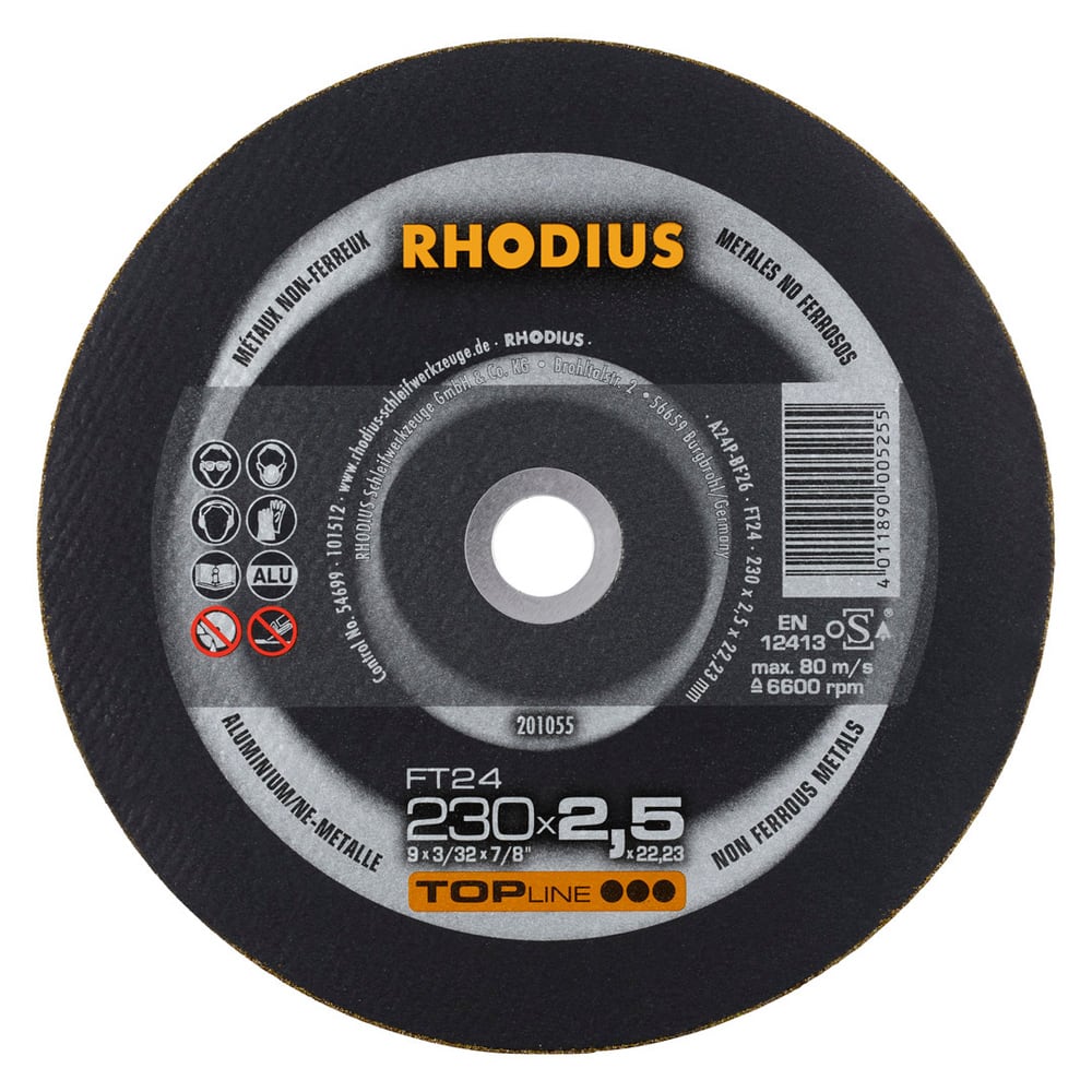 Die Freihandtrennscheibe mit einer Scheibenbreite von 2,0 mm und 2,5 mm ist in den Durchmessern 125 mm bis 230 mm erhältlich.