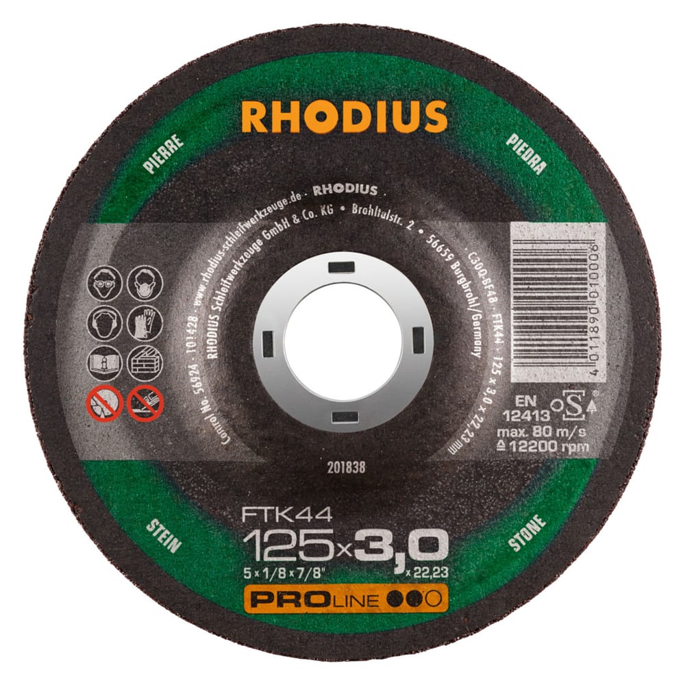 Die Trennscheibe enthält hochwertiges SIC und 2 vollflächige Glasfasergewebe. Die Mindestseitenlast für die Trennscheibe beträgt nach EN 12413 und oSa 40 N, bzw. ab Durchmesser 150 mm 50 N. Im Bohrungsring ist das Verfallsdatum (drei Jahre) eingeprägt. Durch aufwendige In-Prozess-Kontrollen in der Produktion wird eine gleichbleibende Qualität gewährleistet. Um ein Maximum an Sicherheit zu bieten, wird jede tausendste Scheibe zerstörend getestet.