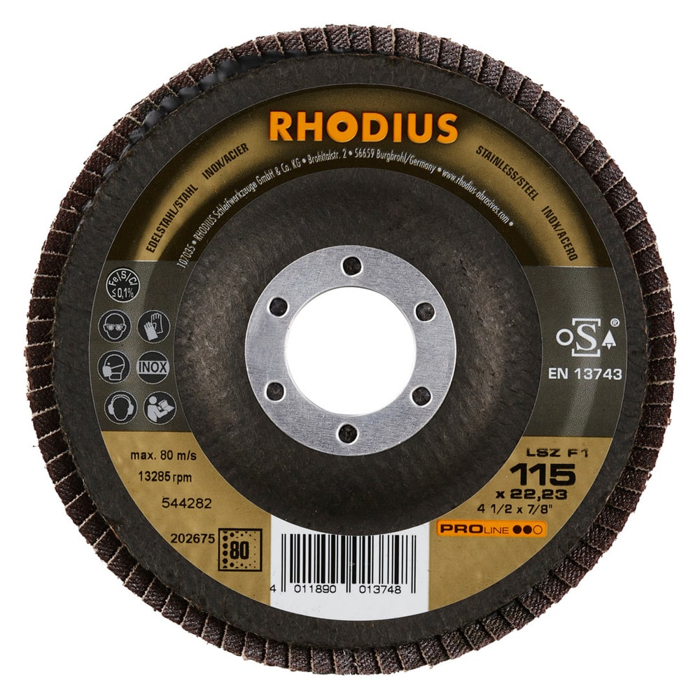 Bei der LSZ F1 wird als Schleifkorn ein hochwertiges Zirkonkorund verwendet. Alle RHODIUS-Lamellenscheiben sind zudem eisen- und schwefelfrei.