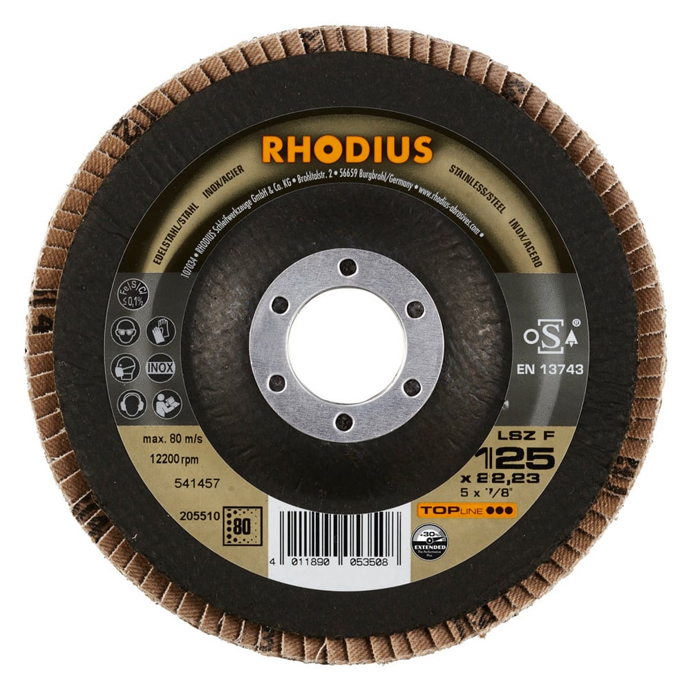 Bei der LSZ F EXTENDED wird als Schleifkorn ein hochwertiges Zirkonkorn verwendet. Dieses ist selbstschärfend. Alle RHODIUS-Lamellenscheiben sind zudem eisen- und schwefelfrei.