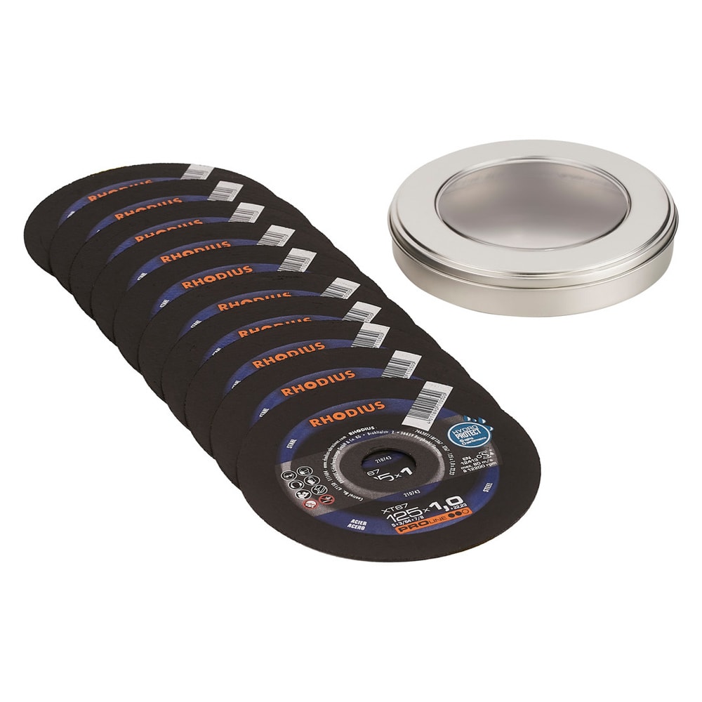 Um noch wirtschaftlicher arbeiten zu können (Kosten pro Schnitt), empfehlen sich RHODIUS-Trennscheiben der Qualitätslinien PRO und TOP bzw. mit der Technologie CERAMICON.
