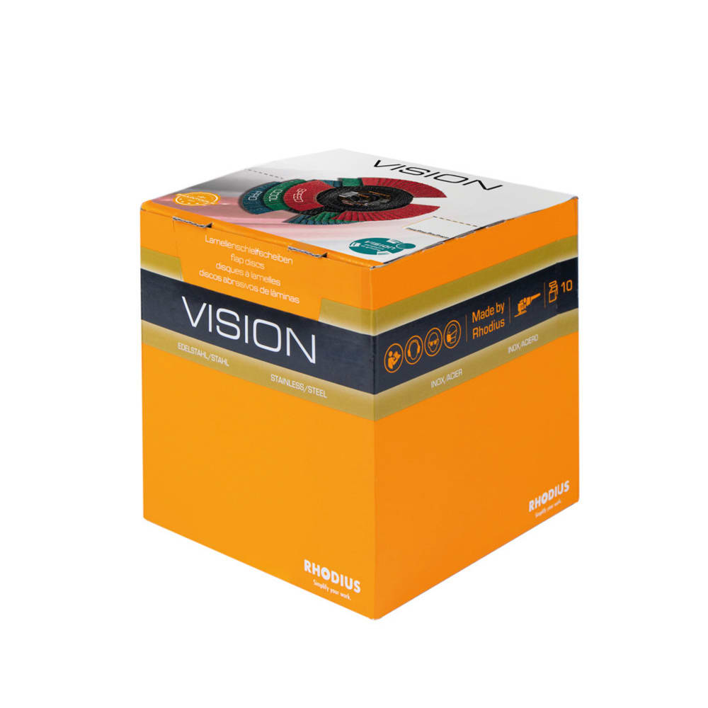 Bei der VISION SPEED X-LOCK wird als Schleifkorn ein hochwertiges Keramikkorn (Sinterkorund) verwendet. Dieses ist selbstschärfend. Alle RHODIUS-Lamellenscheiben sind zudem eisen- und schwefelfrei.