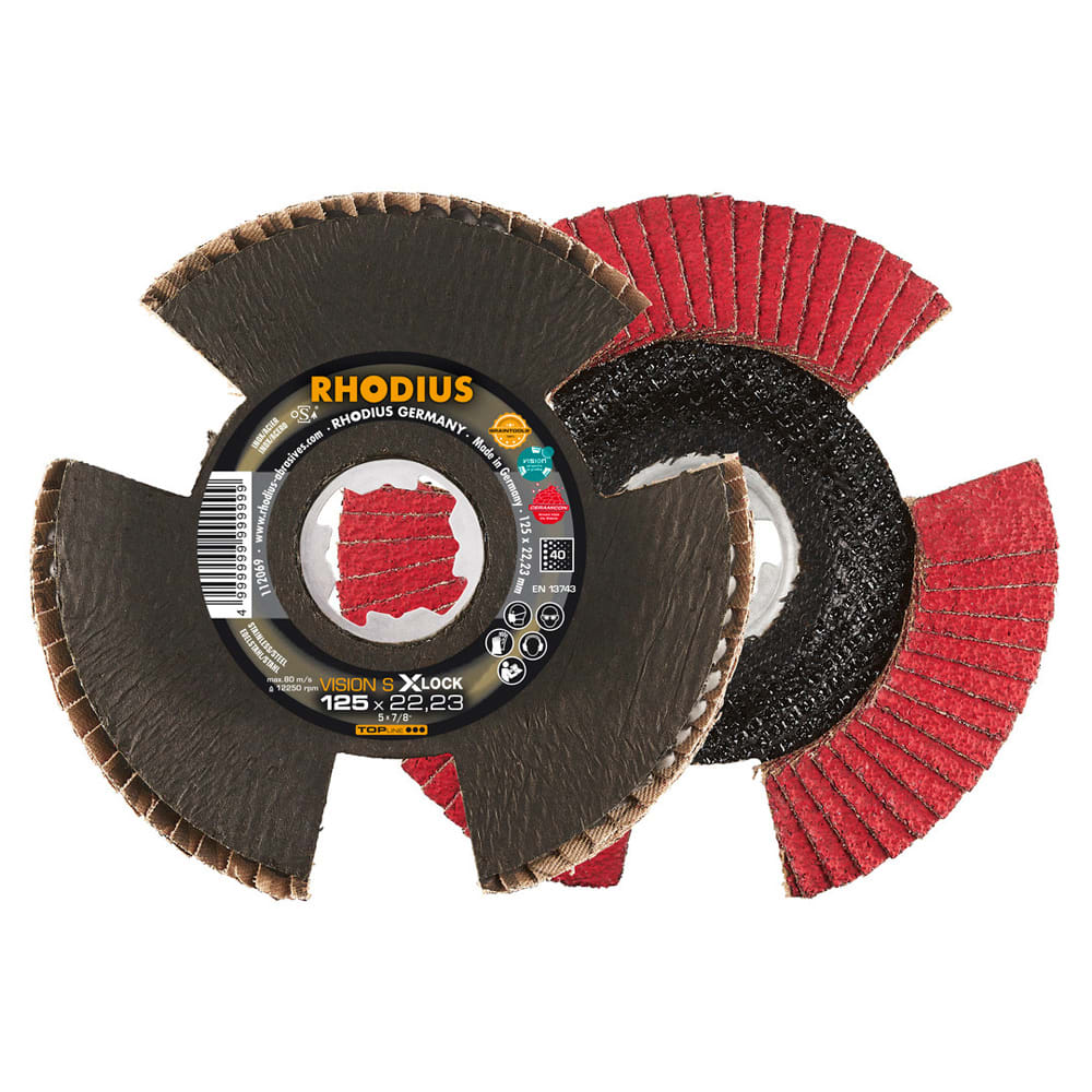 Bei der VISION SPEED X-LOCK wird als Schleifkorn ein hochwertiges Keramikkorn (Sinterkorund) verwendet. Dieses ist selbstschärfend. Alle RHODIUS-Lamellenscheiben sind zudem eisen- und schwefelfrei.