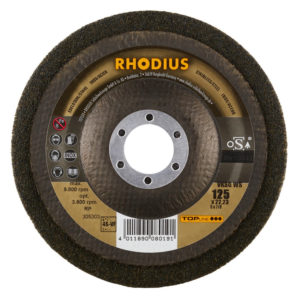 Mit den RHODIUS Vlieskompaktscheibe VKSG WS (und VKSS WS, schräge Ausführung) erhält der Anwender das beste RHODIUS Werkzeug seiner Kategorie. RHODIUS TOPline Produkte stehen für ein Höchstmass an Leistung und Qualität.