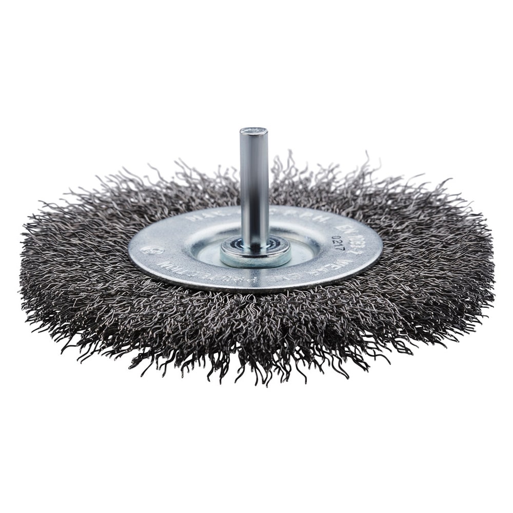 Edelstahl-Rundbürste mit gewelltem Edelstahldraht mit 6 mm Schaft für den Einsatz auf Bohrmaschinen.- Für flexibles Arbeiten