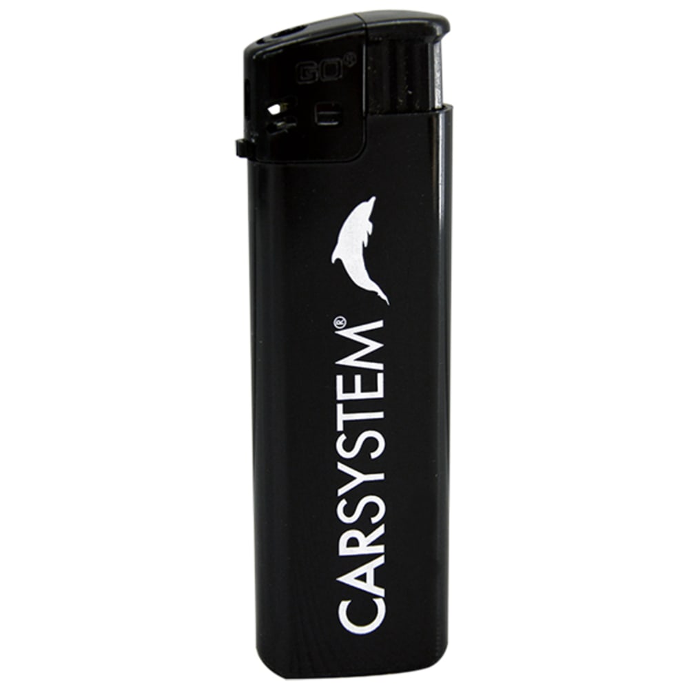 Das wiederbefüllbare Gasfeuerzeug von Carsystem in schwarz überzeugt mit einer höhenverstellbaren Flamme und dem Carsystem-Logo in weiss. Das Feuerzeug liegt gut in der Hand und ist das ideale Werbegeschenk für Partner, Kunden und Freunde.
