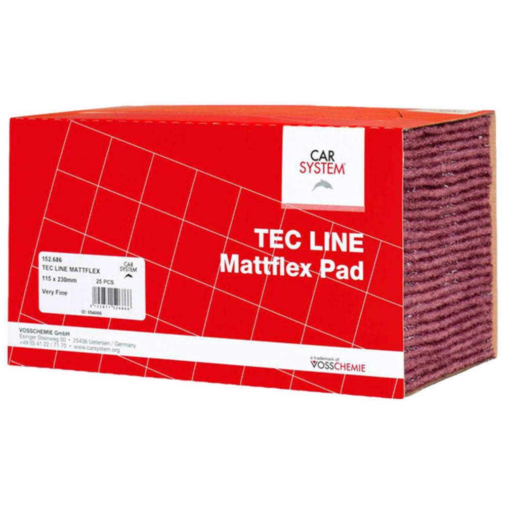 Das Carsystem Tec Line Mattflex Pad ist ein Schleifvlies mit dreidimensionalem Aufbau, welches sich ideal zum Mattieren von schwer zugänglichen Stellen, kleinsten Ecken, Falzen und Vertiefungen vor dem Füller- oder Decklackauftrag eignet.