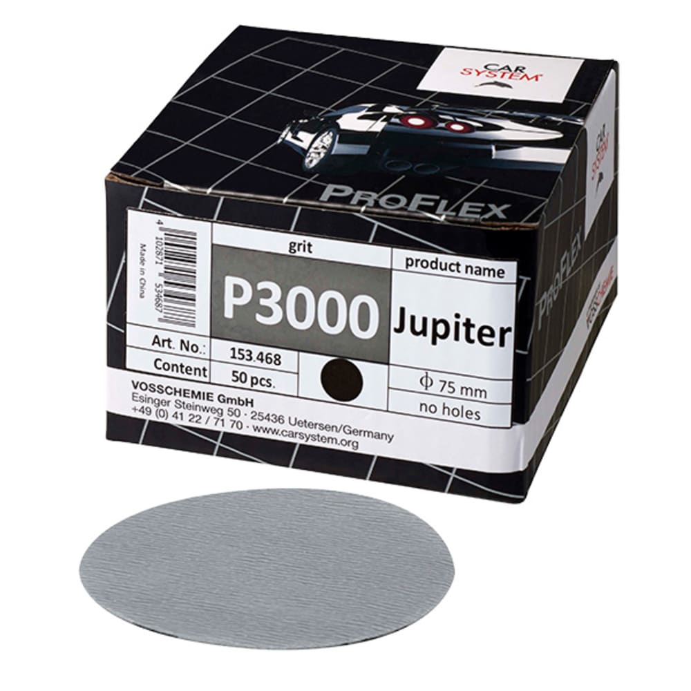 Das Carsystem ProFlex Jupiter ist eine ultraflexible Softfilmscheibe, welche, je nach Körnung, vom Füllerendschliff bis zum Finish verwendet werden kann. Durch den ultraflexiblen Träger wird die Oberflächenstruktur extrem schonend geschliffen und somit die Polierzeit reduziert.