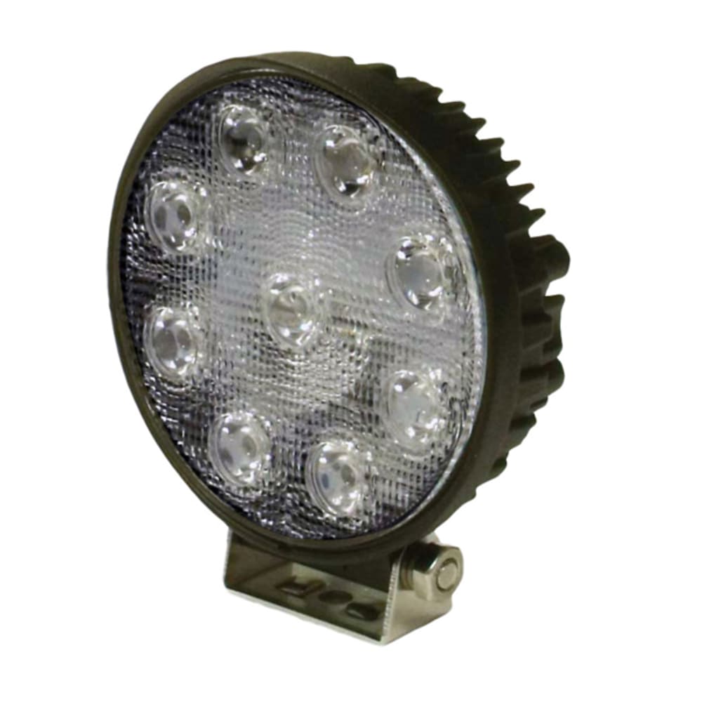 - LED Arbeitsscheinwerfer rund in robustem schwarzen Aluminiumgehäuse.