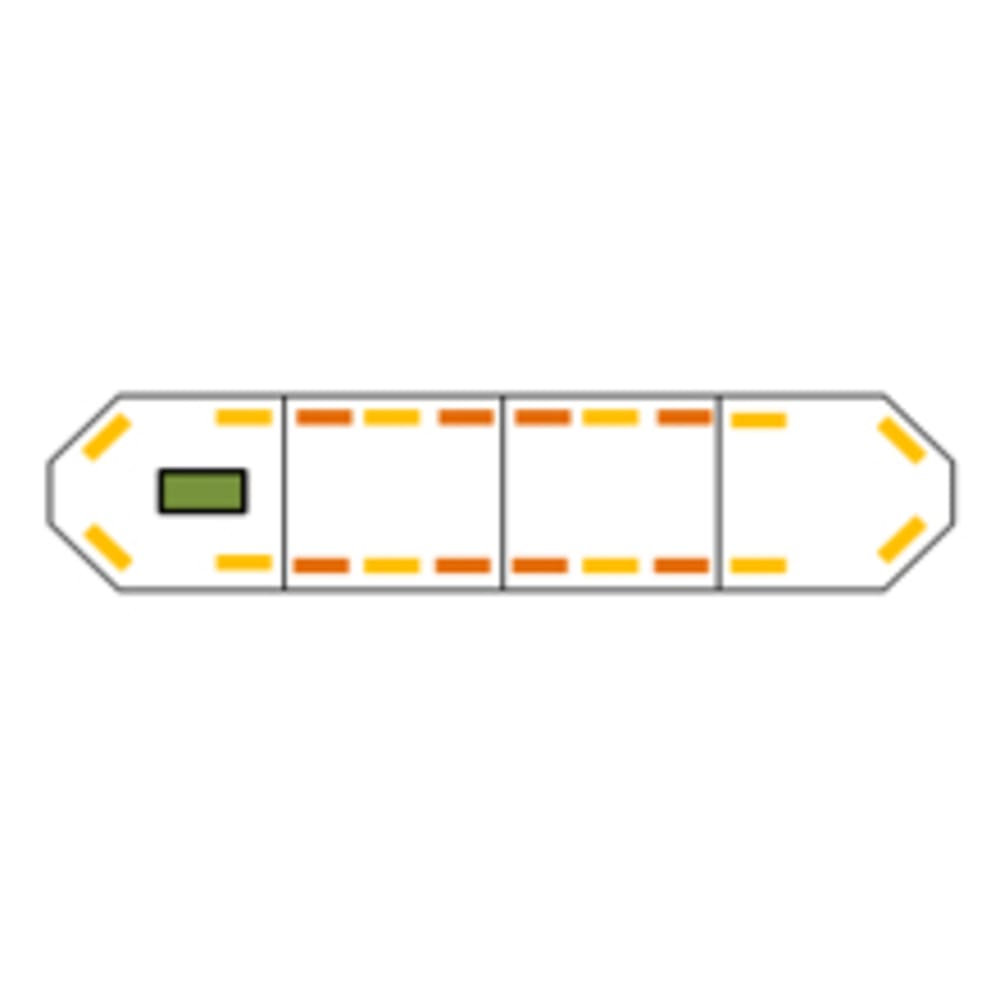 Erhältlich in 4 verschiedenen Längen 950 mm, 1250 mm, 1550 mm und 1850 mm, besteht der STELLAR aus mehreren leistungsstarken gelben Blitzmodulen. Variationen können Stopp-/Schlusslicht/Richtungsanzeiger, Rück-Arbeitsscheinwerfer und/oder Alley Light, Traffic Master, sein.