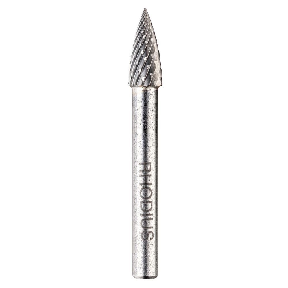 Der Frässtift mit der Form G (Spitzbogen) nach DIN 8032 ist mit den Kopfdurchmessern von 8 mm bis 12,7 mm erhältlich. Der Schaftdurchmesser beträgt 6 mm.