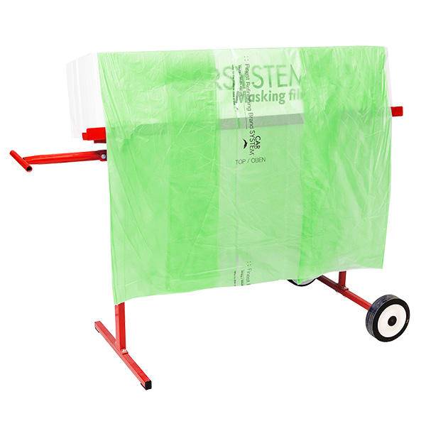 Wasserfeste, lackhaftende Abdeckfolie in einer Dispenserbox. Die Abdeckfolie lässt sich gut schneiden, ist temperaturbeständig bis 110 °C und eignet sich für alle normalen Abdeckarbeiten. Durch die starke Statik schmiegt sich die Folie fest am Fahrzeug an und lässt sich dadurch auch von einer Person gut verarbeiten.