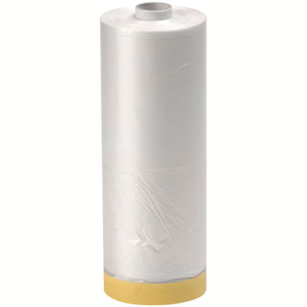 Lackhaftende Abdeckfolie mit integriertem Klebeband zum schnellen Abdecken von z.B. Fenstern, Stoßstangen und Schwellern.