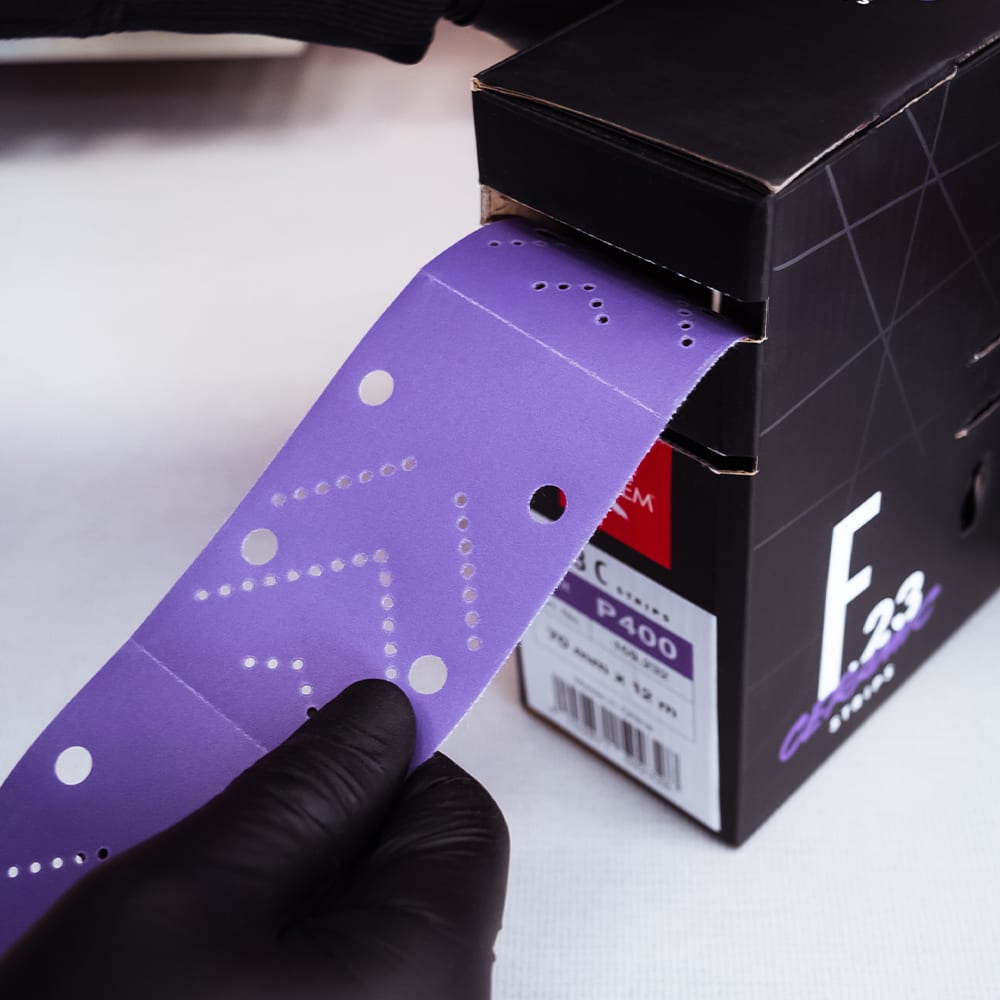 Die neue Keramikschleifstreifen F.23 C von Carsystem schärfen sich während des Schleifprozesses nach und sind unabhängig vom Schleifdruck langlebig. Eine Stearatbeschichtung sorgt dafür, dass die Staubbildung verringert wird und kein Zusetzen des Schleifmittels beim Schleifen entsteht. Die F.23 C Strips von Carsystem sind perforiert und somit für den jeweiligen Schleifprozess anpassbar.