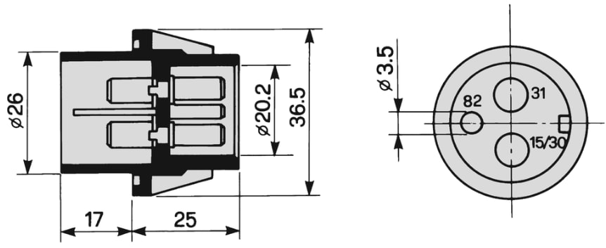 • Kontaktspitze offen.Belastung: 12/24V 2 x 25A + 1 x 5A