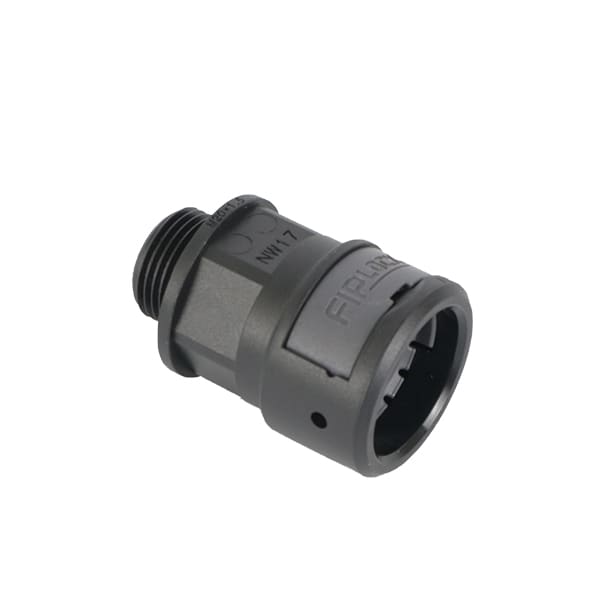 Die einteilige Kabelschutzverschraubung ASPA-M mit metrischem Anschlussgewinde aus speziell modifiziertem, halogenfreiem Polyamid 6 ist selbstverlöschend und beständig gegen die meisten gebräuchlichen chemischen Medien. Dank des neu entwickelten 360°-Verriegelungssystems und der innenliegenden Rohrdichtungen erfüllt ASPA-M in Verbindung mit unseren FIPLOCK-Wellrohren die höchstmögliche Schutzklasse IP69.