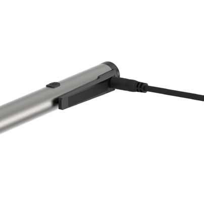 Die Stiftleuchte wird einfach mit USB-Kabel aufgeladen und dadurch erübrigt sich das störende, zeitraubende Austauschen der Akkus. Batterieanzeige vorne zeigt den Ladezustand an.